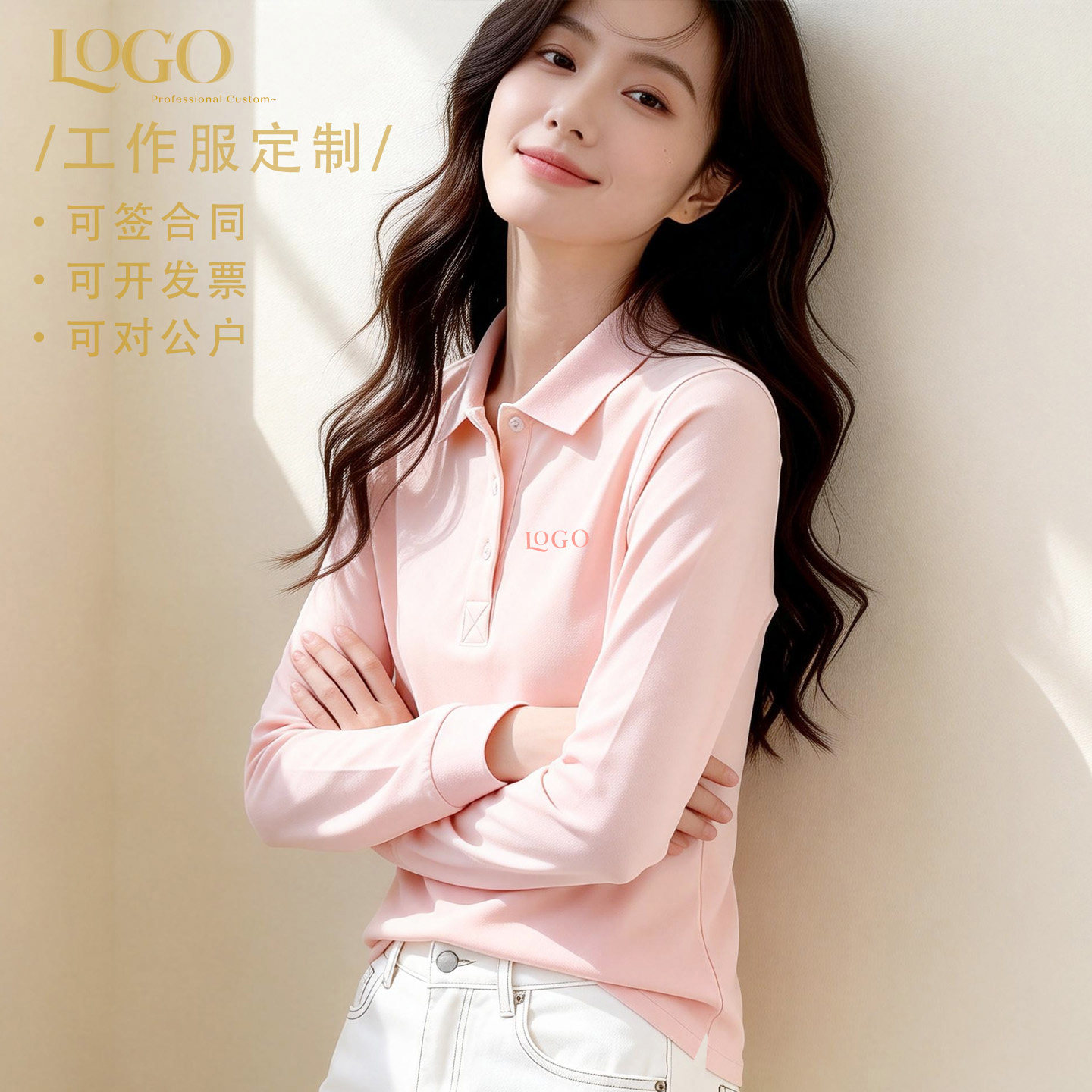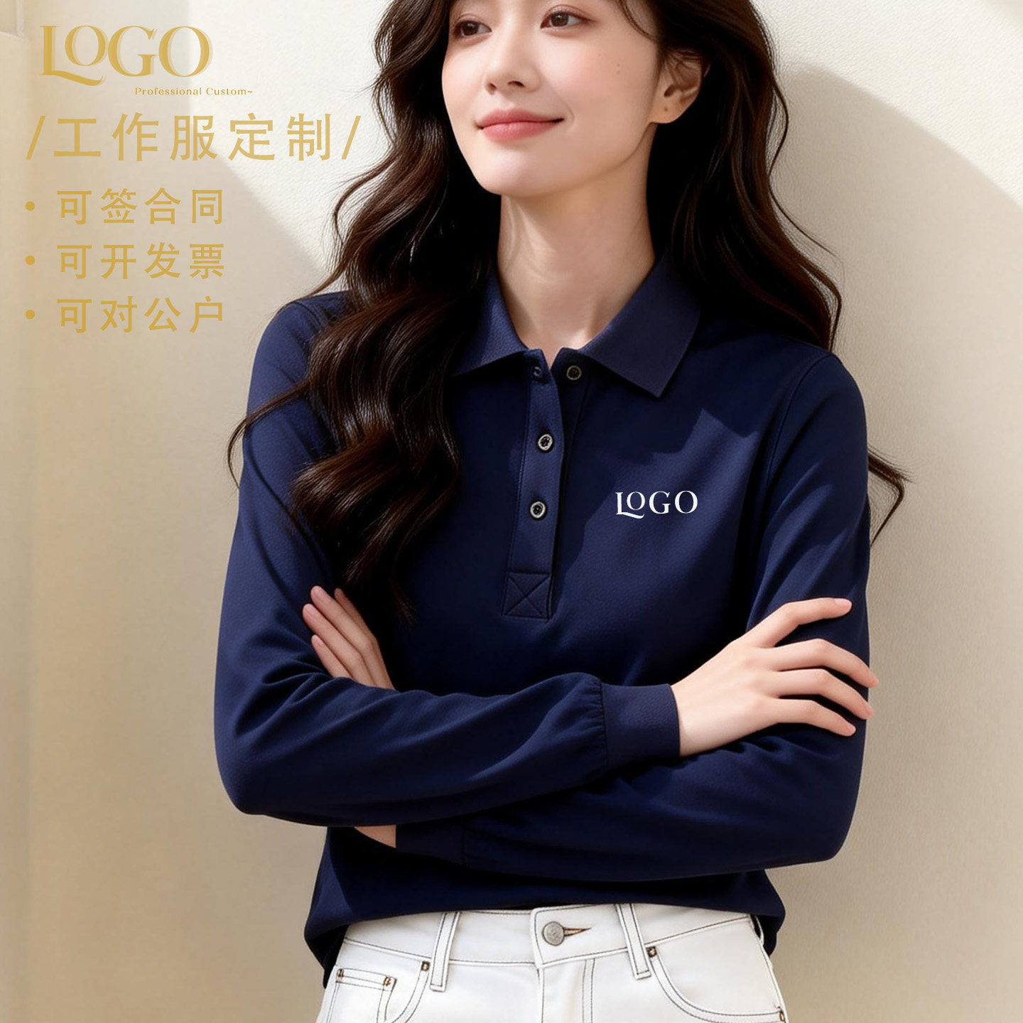 2026新款春秋纯色长袖polo衫定制工作服t恤女订制纯棉团队印logo