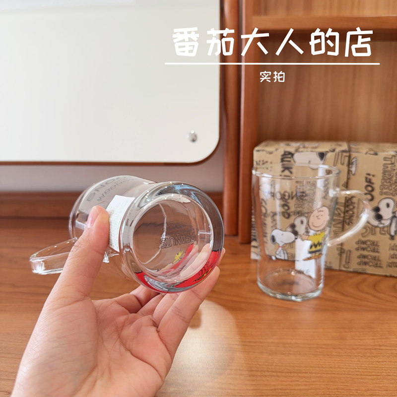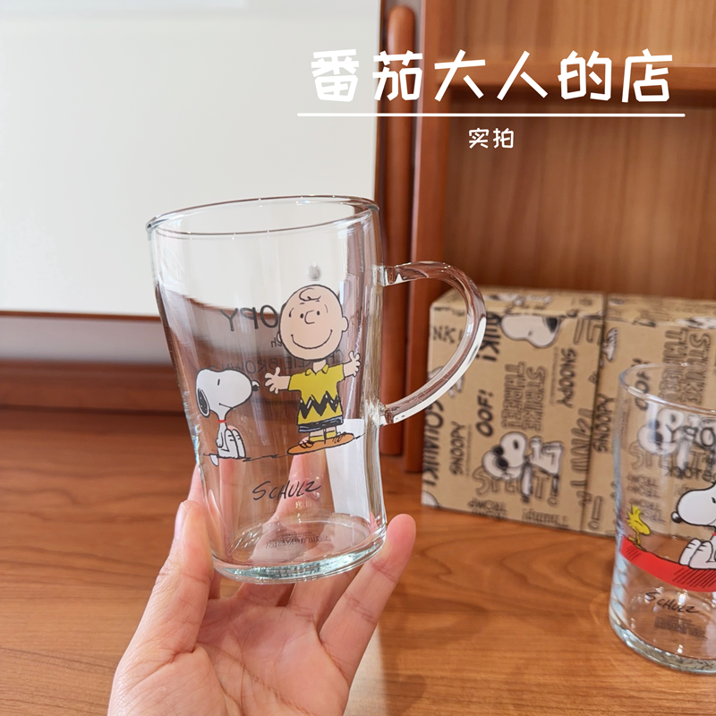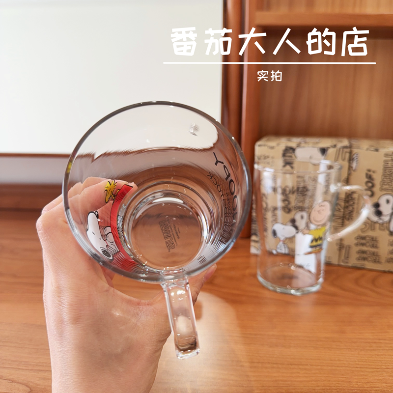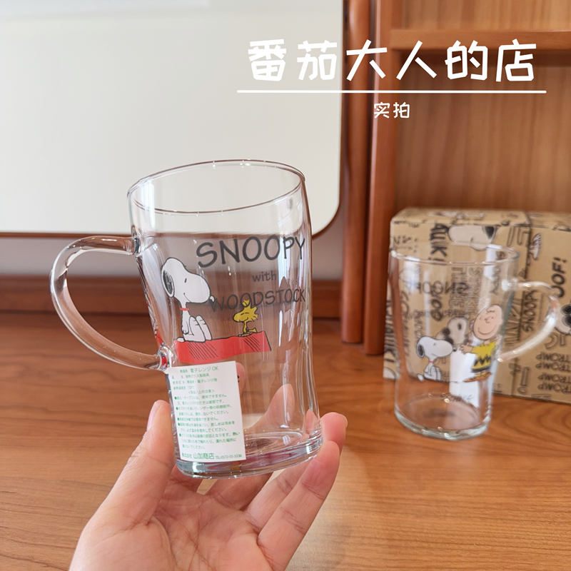 现货!日本制史努比卡通可爱经典款耐热玻璃杯果汁杯咖啡杯水杯