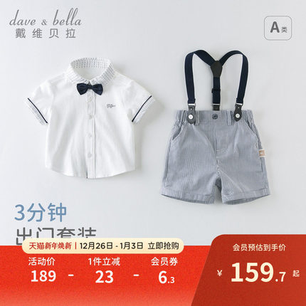 戴维贝拉男童夏装两件套儿童周岁演出礼服套装男孩衣服宝宝背带裤