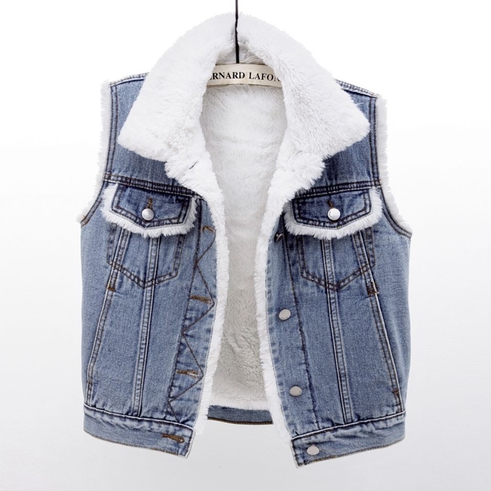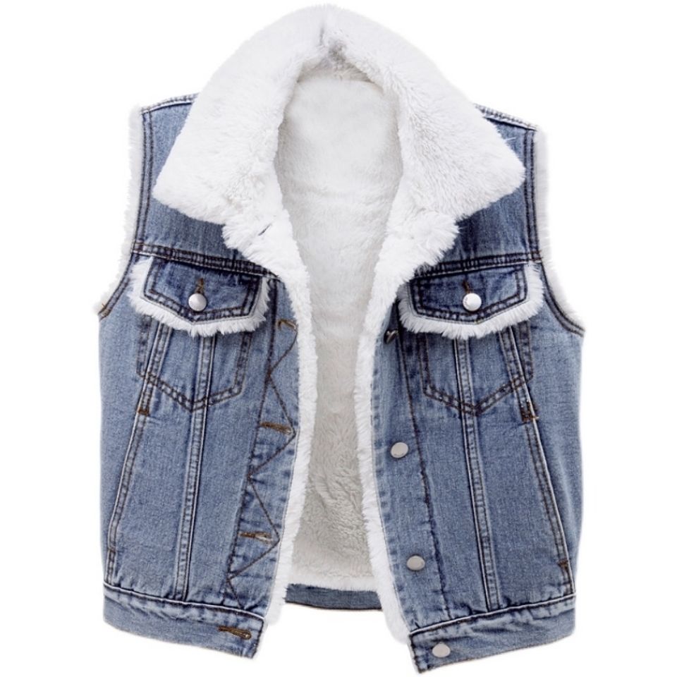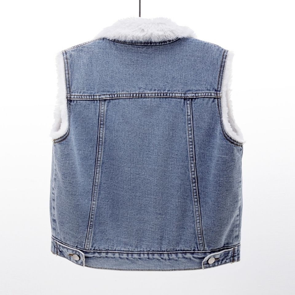 2023年冬季韩版宽松牛仔棉马甲女短款上衣纯色无袖羊羔绒保暖棉衣
