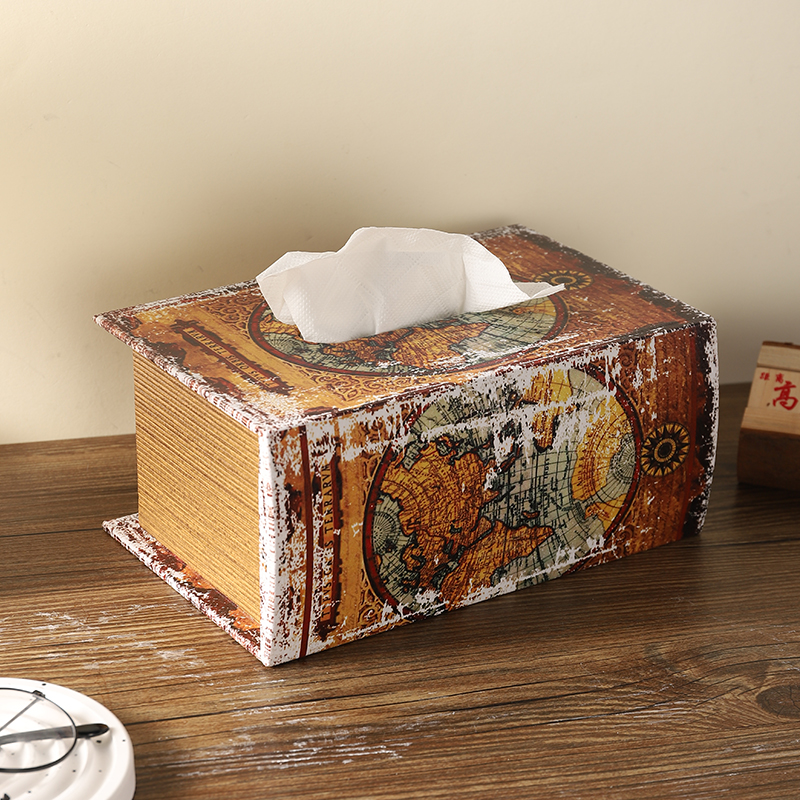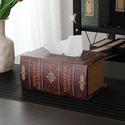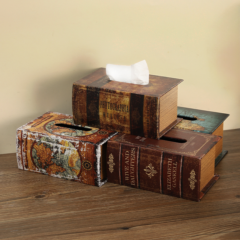 复古木质仿真书纸巾盒中古风桌面抽纸盒家用客厅创意书本餐巾纸盒