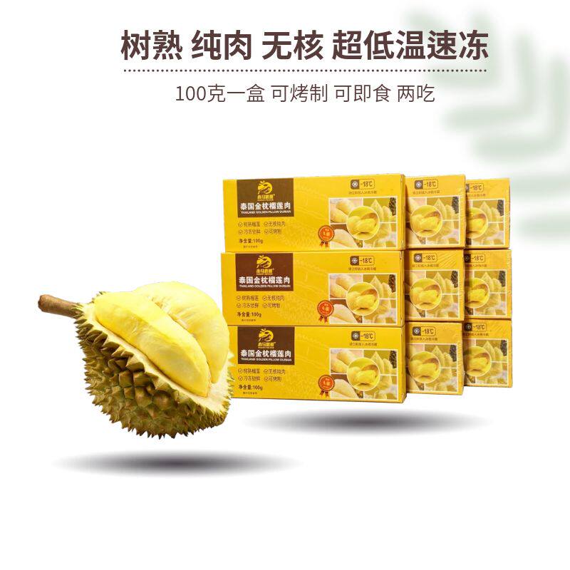 【10盒巨划算】金枕头无核烤榴莲果肉100g*10 树熟冻榴莲水果顺丰