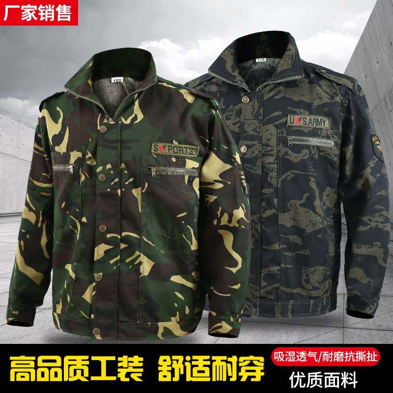 迷彩服外套男上衣春秋长袖夹克工作服多兜宽松耐磨工地汽修劳保服