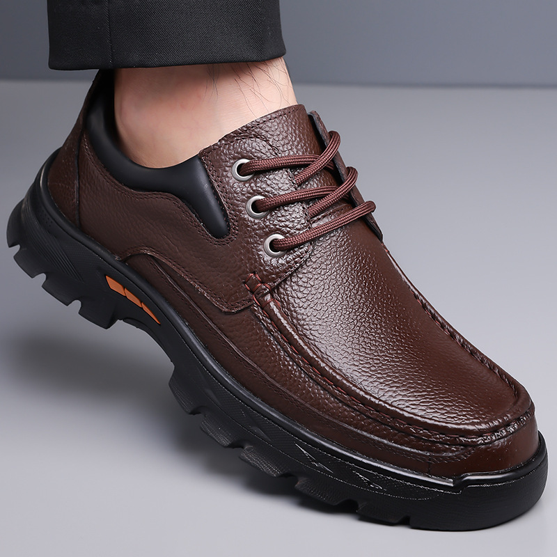 中老年软底爸爸新款秋季男鞋头层牛皮圆头男商务休闲皮鞋单鞋休闲