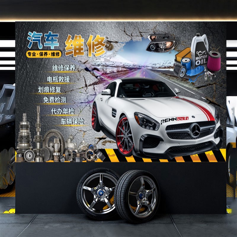 汽车维修店防水墙纸汽车美容洗车店壁纸改装汽修厂定制背景墙布3D