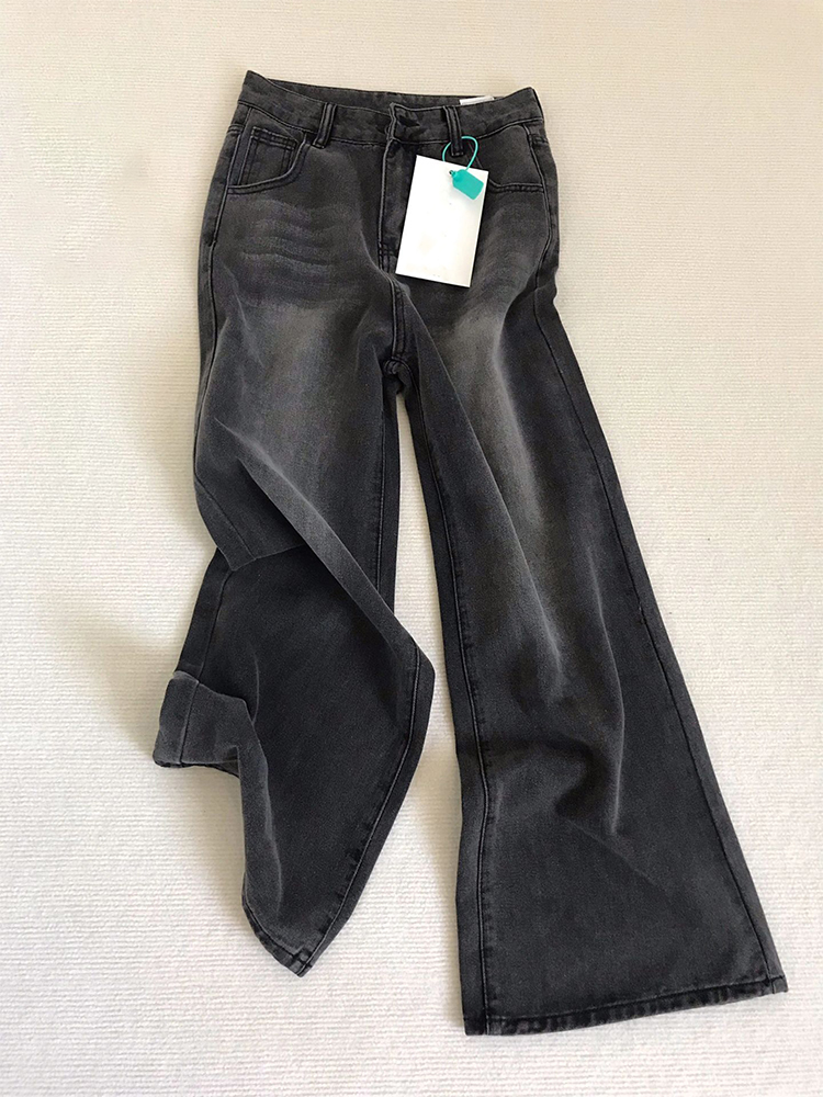 秋季美拉德穿搭黑色高腰牛仔裤女宽松大码复古垂感拖地裤阔腿裤子