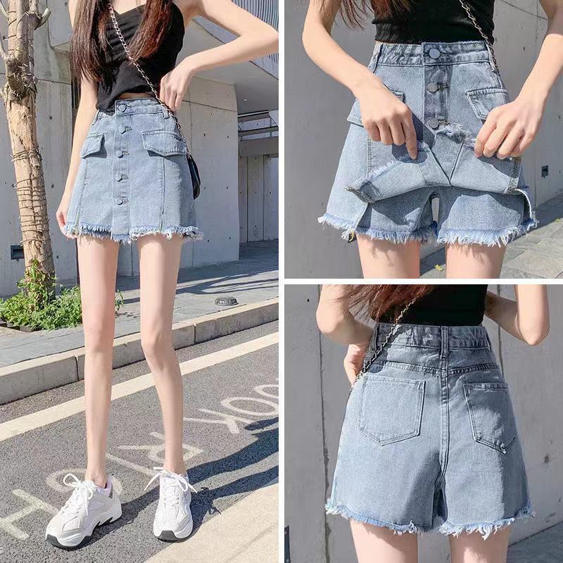 高腰牛仔短裙女裙裤夏季薄款2021年新款显瘦a字短裤包臀半身裙子