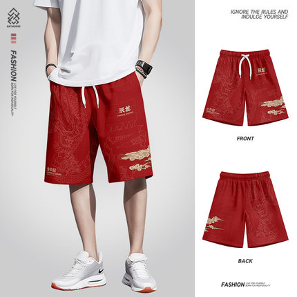2025夏季新款国潮十二生肖短裤男士中国风宽松薄款运动沙滩五分裤