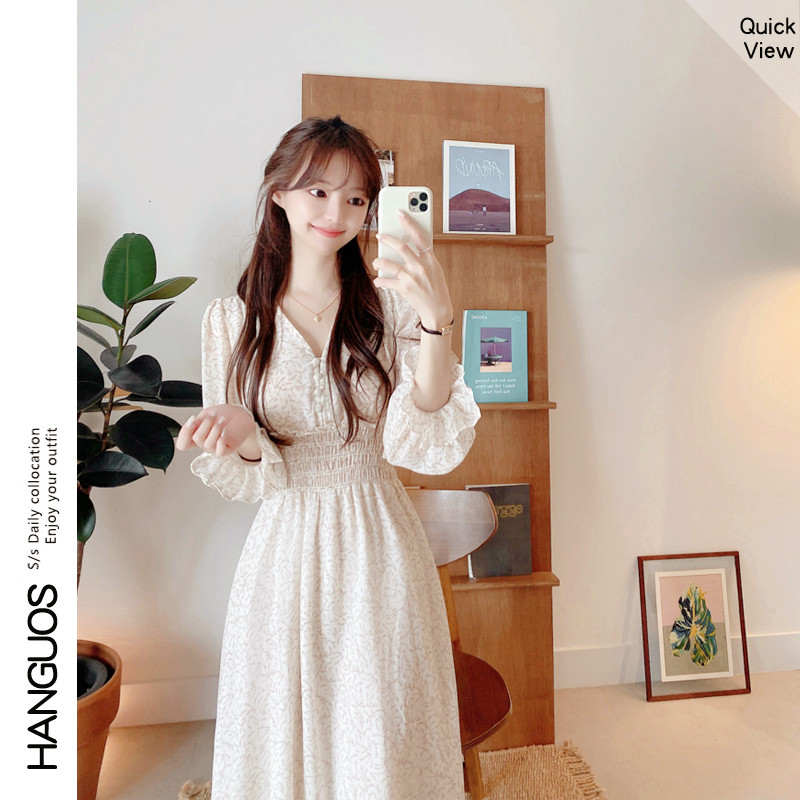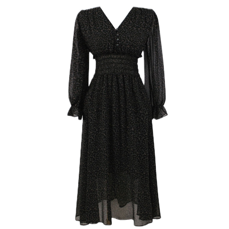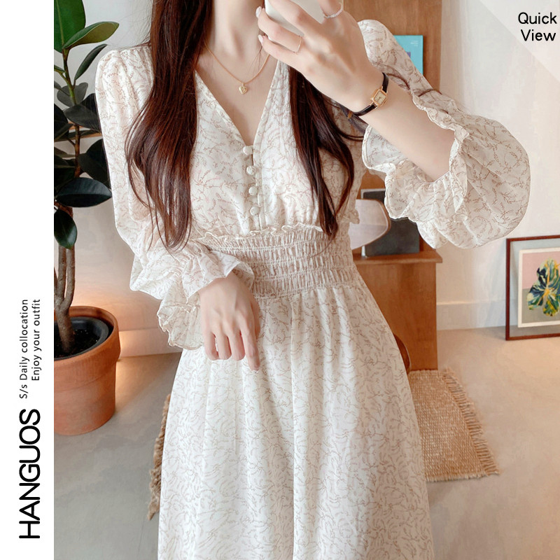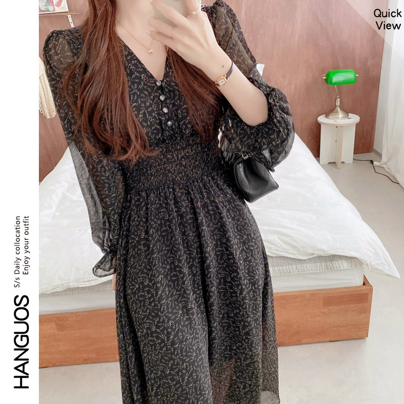 轻奢名媛温柔风森系甜美碎花雪纺裙女ins风炸街连衣裙子秋冬季潮