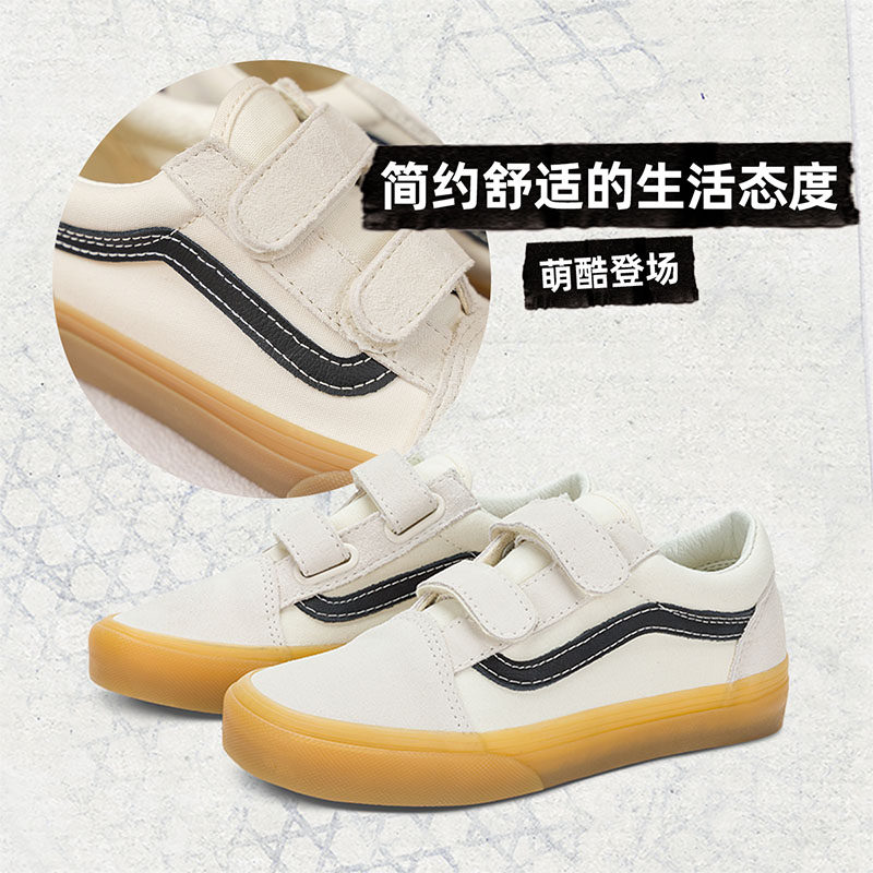Vans范斯童鞋官方 Old Skool V生胶底魔术贴设计中大童板鞋