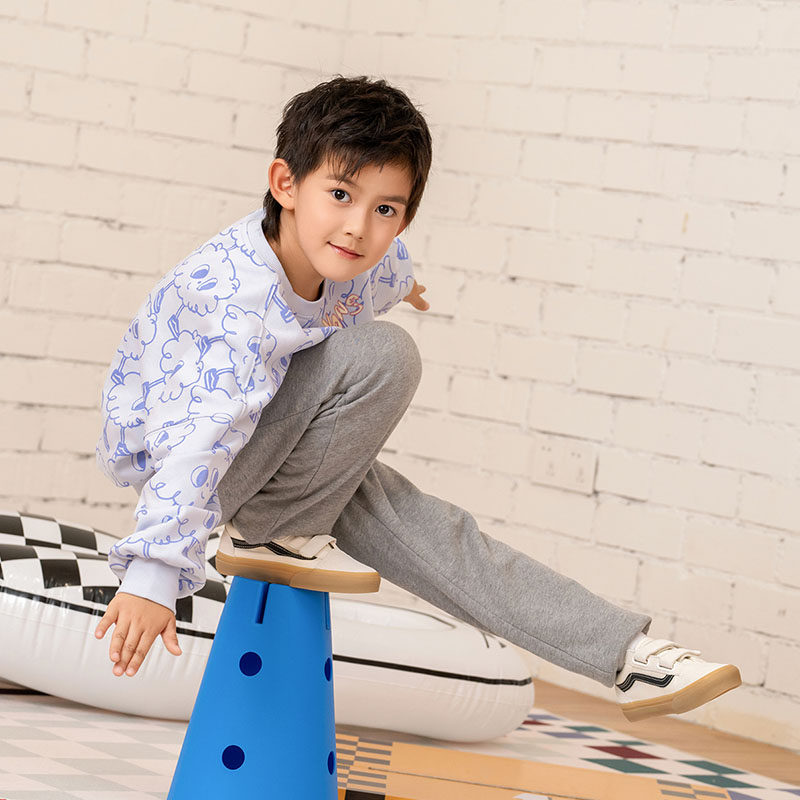 白色牛筋底魔术贴中大童板鞋