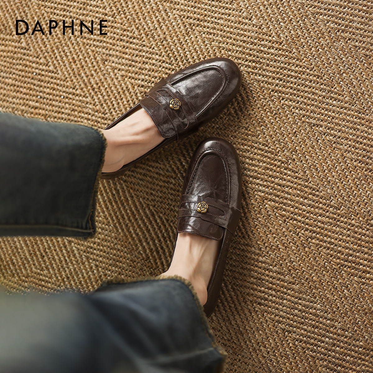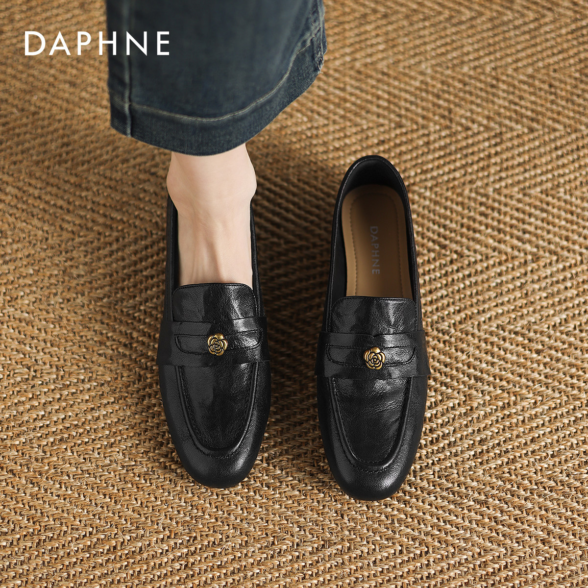 达芙妮软底乐福鞋女英伦风皮鞋