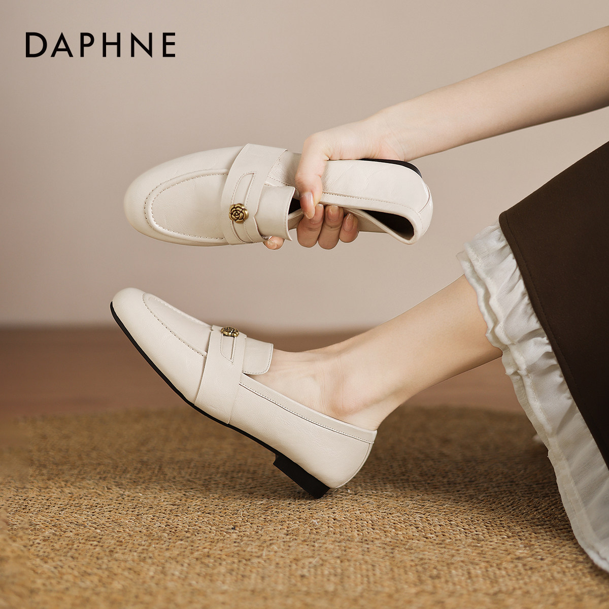 达芙妮软底乐福鞋女款春季2026新款不累脚英伦风皮鞋通勤平底单鞋