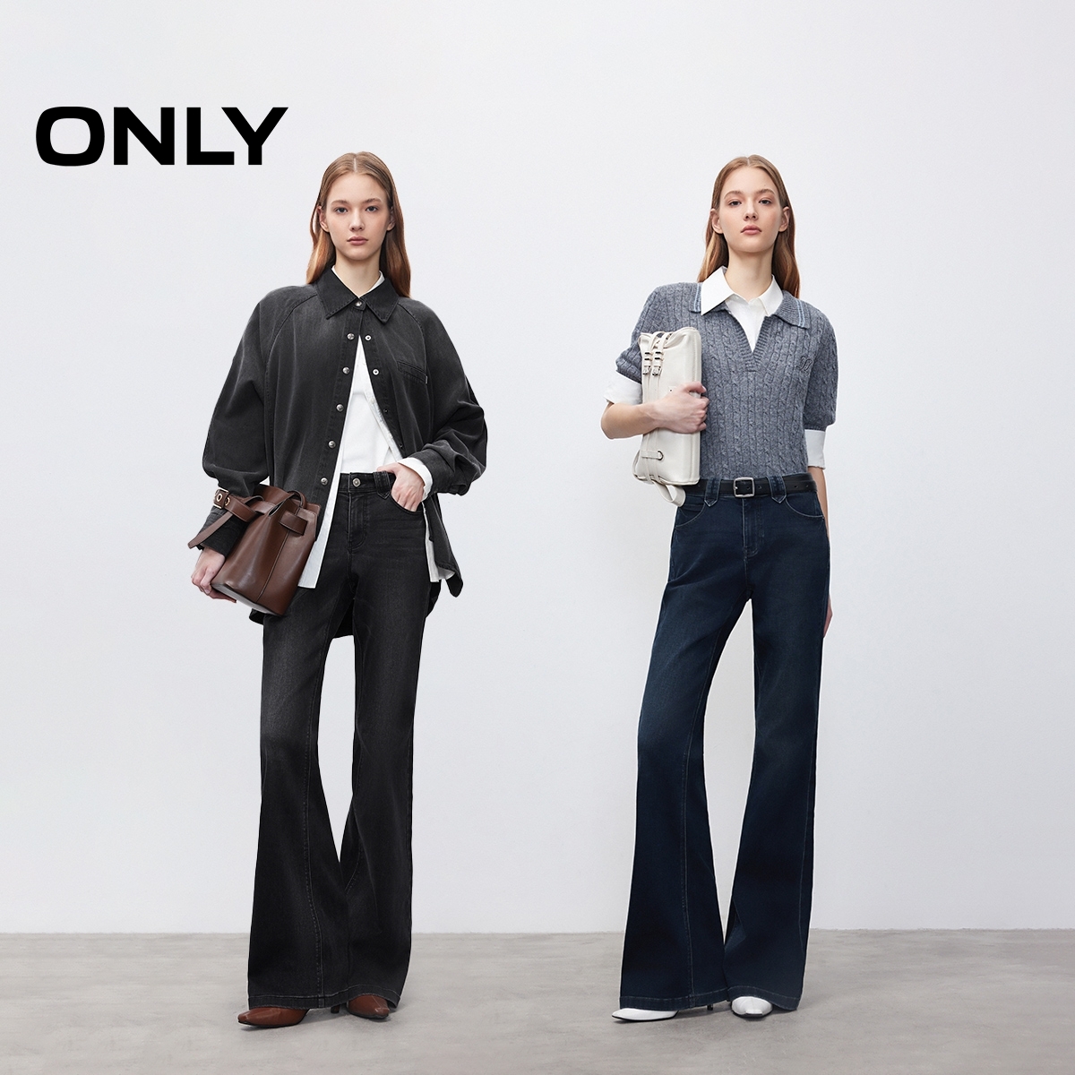 绫致ONLY2025冬季新款做旧水洗低腰宽松微喇裤长裤牛仔裤女