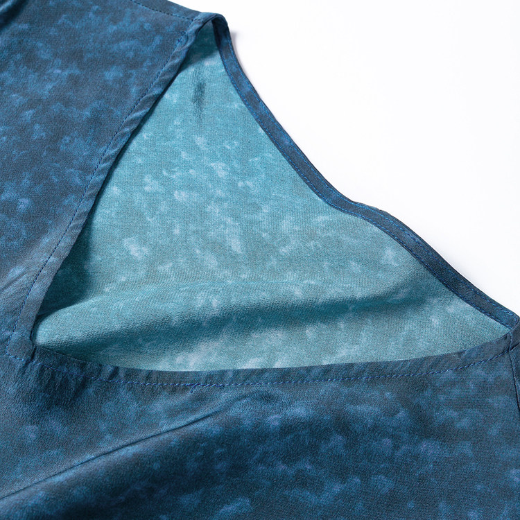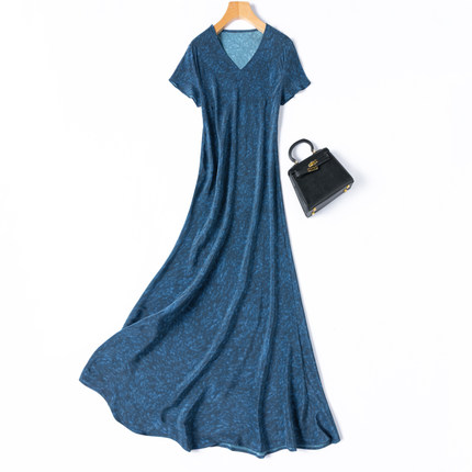 婀娜人鱼裙!显瘦斜裁!1.3米裙长!真丝V领短袖鱼尾连衣裙水墨