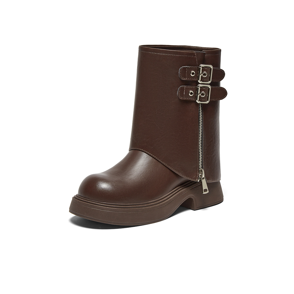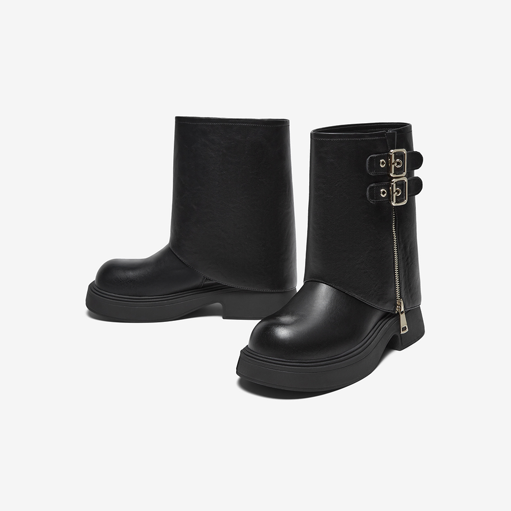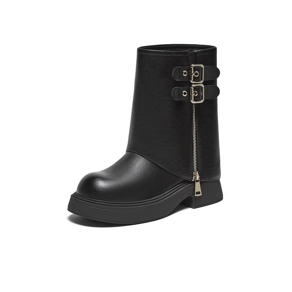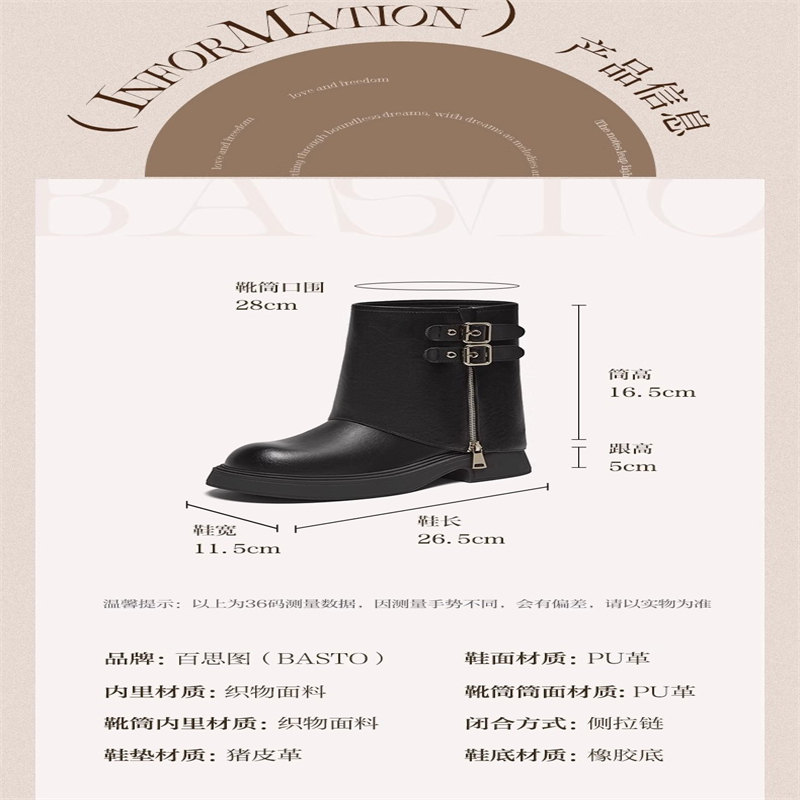 百思图2024冬新款女鞋时尚街头裤管靴粗腿显瘦女中筒短靴BP772DZ4