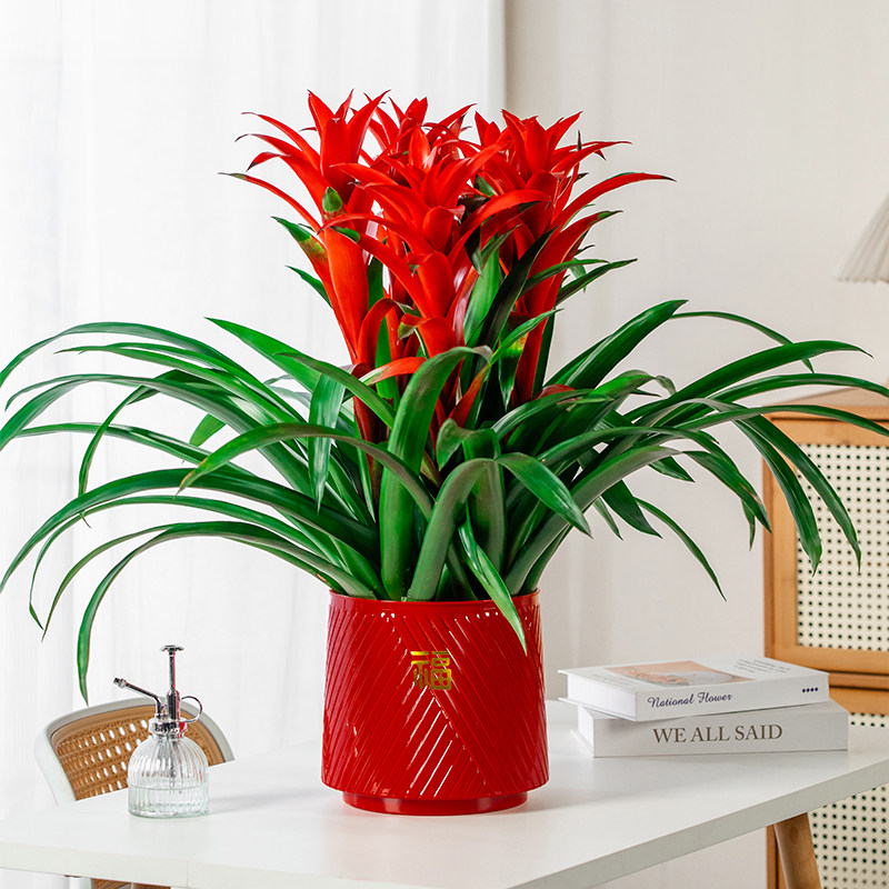 年宵花鸿运当头大红星盆栽室内客厅桌面绿植净化空气大凤梨鲜艳