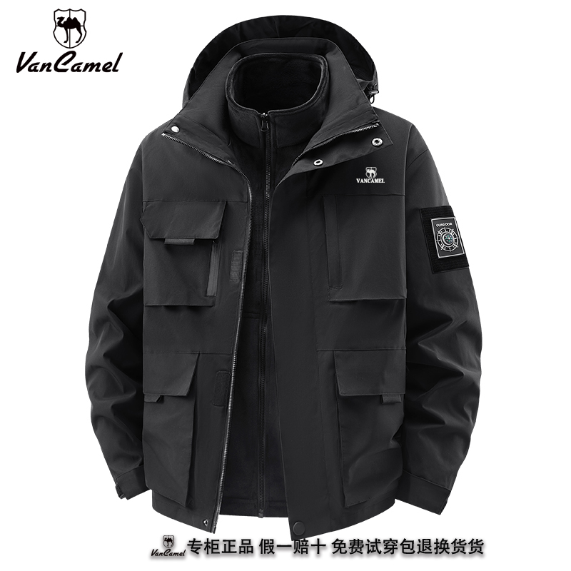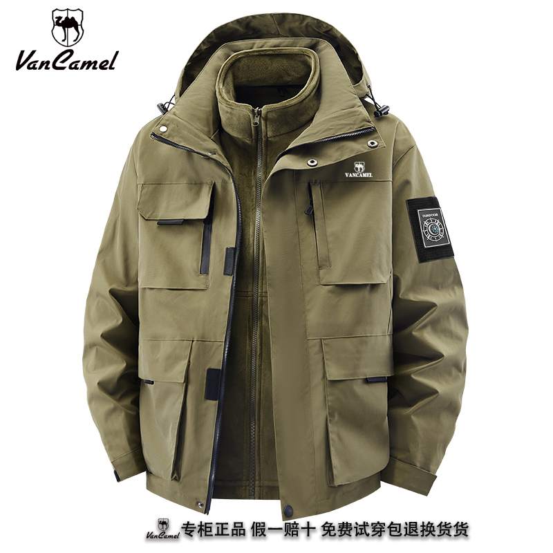 西域骆驼男士冲锋衣三合一可拆卸冬季加绒加厚保暖外套男防水防风