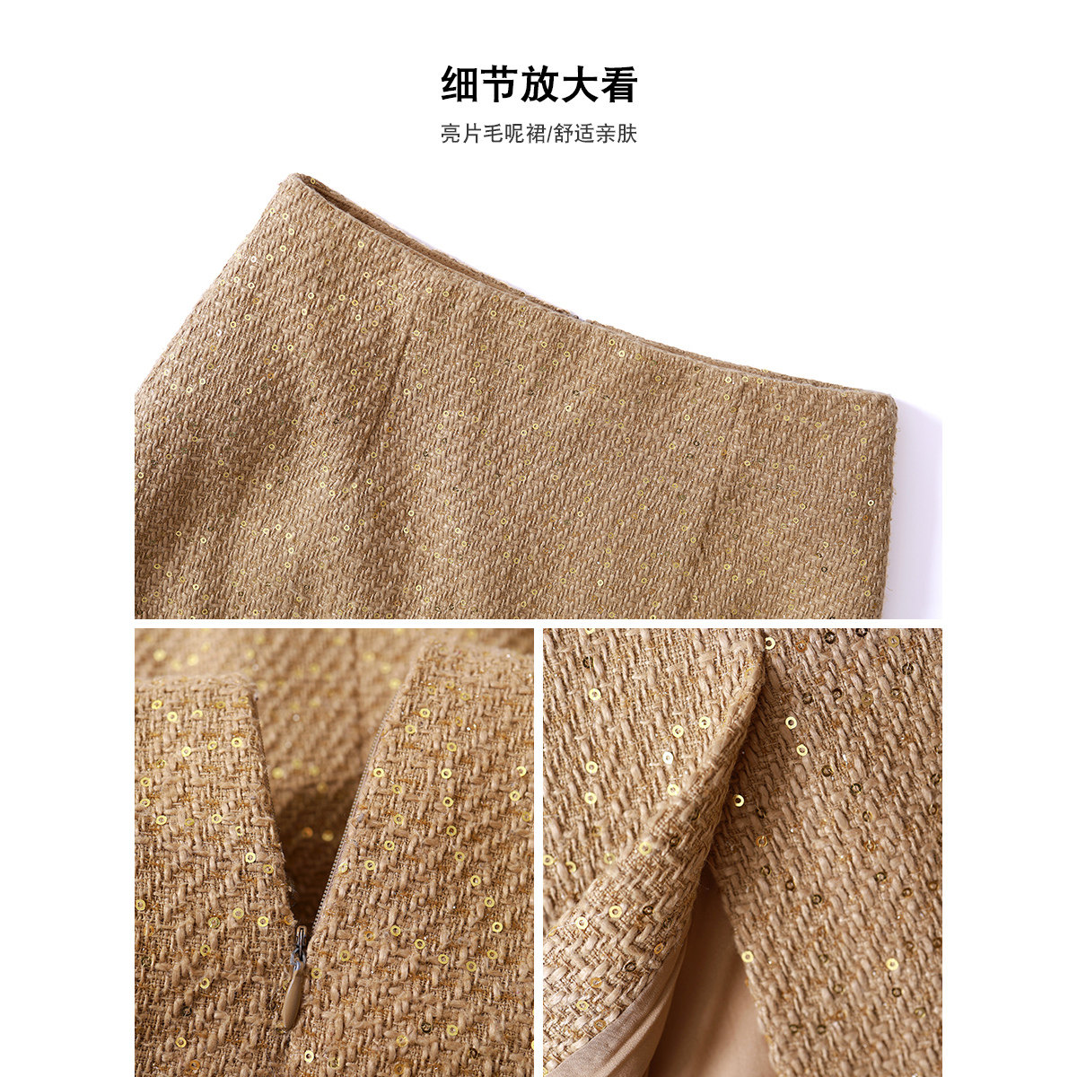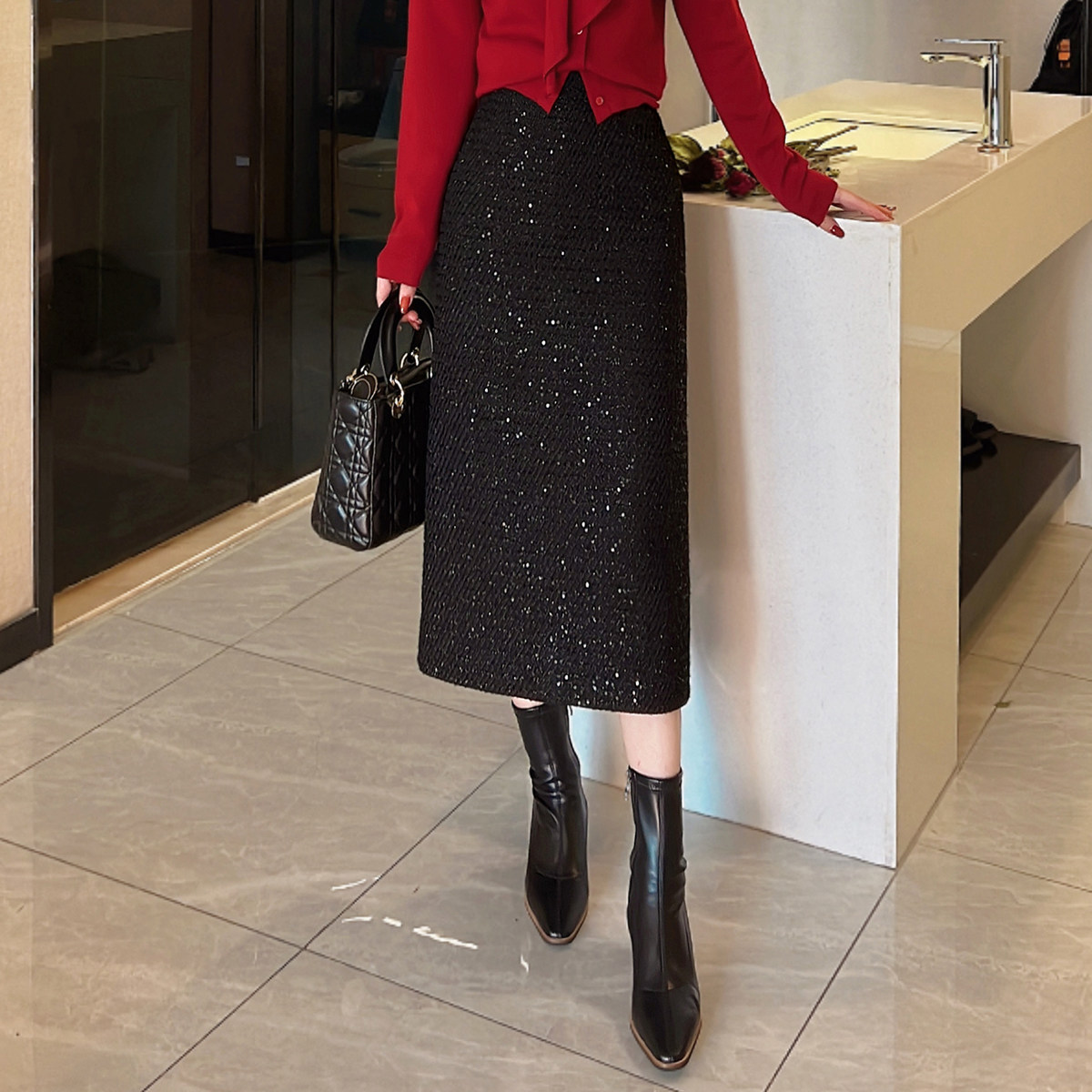 小香风亮片半身裙女秋冬2025新款高腰显瘦直筒裙高级感气质包臀裙