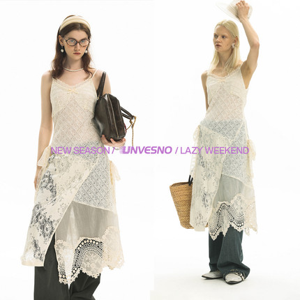 【镂空蕾丝】Unvesno(UN) 慵懒感ins风拼接可叠穿搭配吊带连衣裙