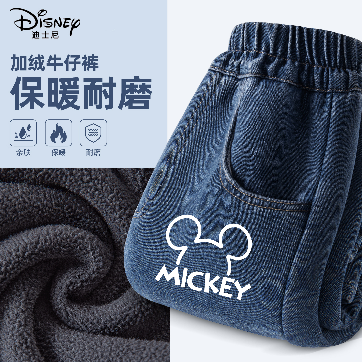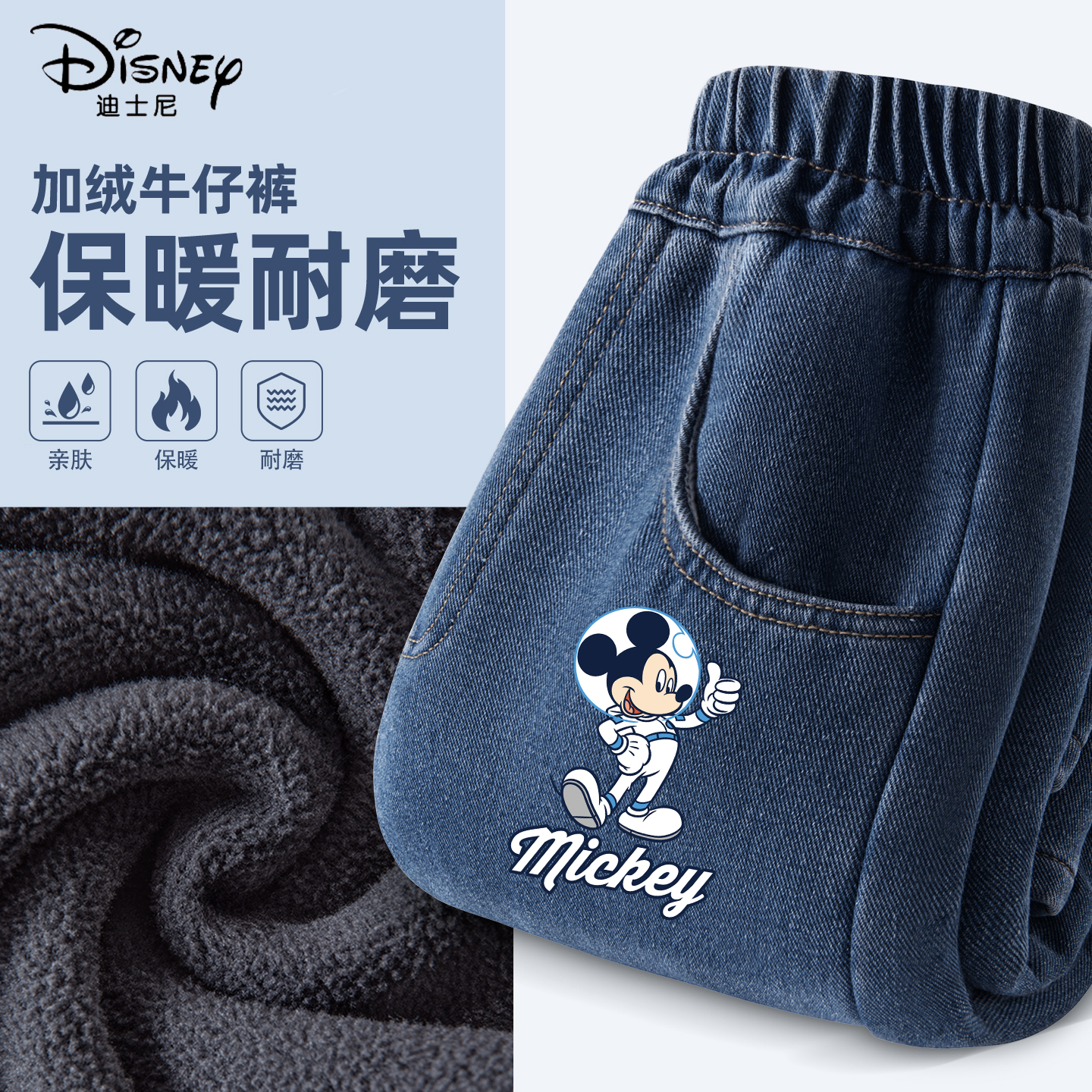 迪士尼男童加绒裤子冬季童裤加厚一条过冬2025新款儿童冬装牛仔裤