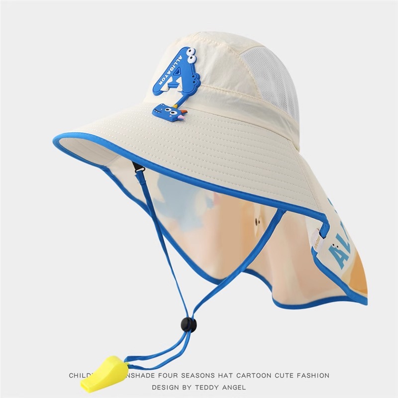 2025新款儿童防晒帽渔夫帽款大檐护颈防紫外线海边沙滩男女孩通用