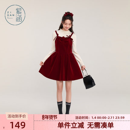 紫涵纯色丝绒吊带连衣裙女冬季新款甜美百搭叠穿宽松中长款a字裙