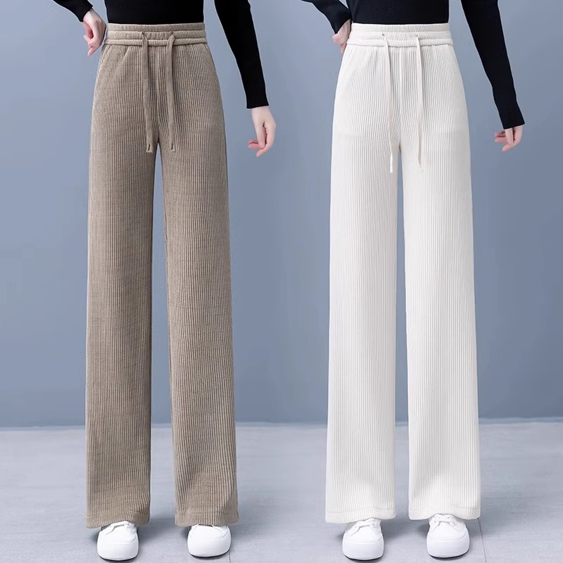 白色窄版雪尼尔阔腿裤女2025新款爆款宽松高腰垂感女士休闲直筒裤