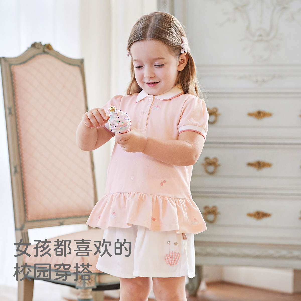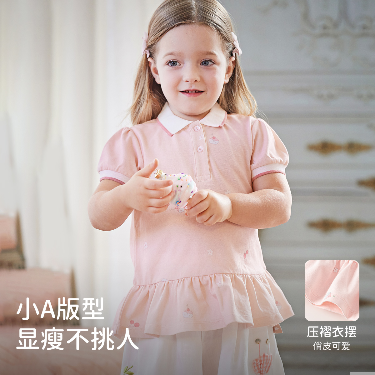 戴维贝拉儿童短袖POLO衫洋气女童夏装裙式上衣女宝宝T恤童装