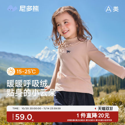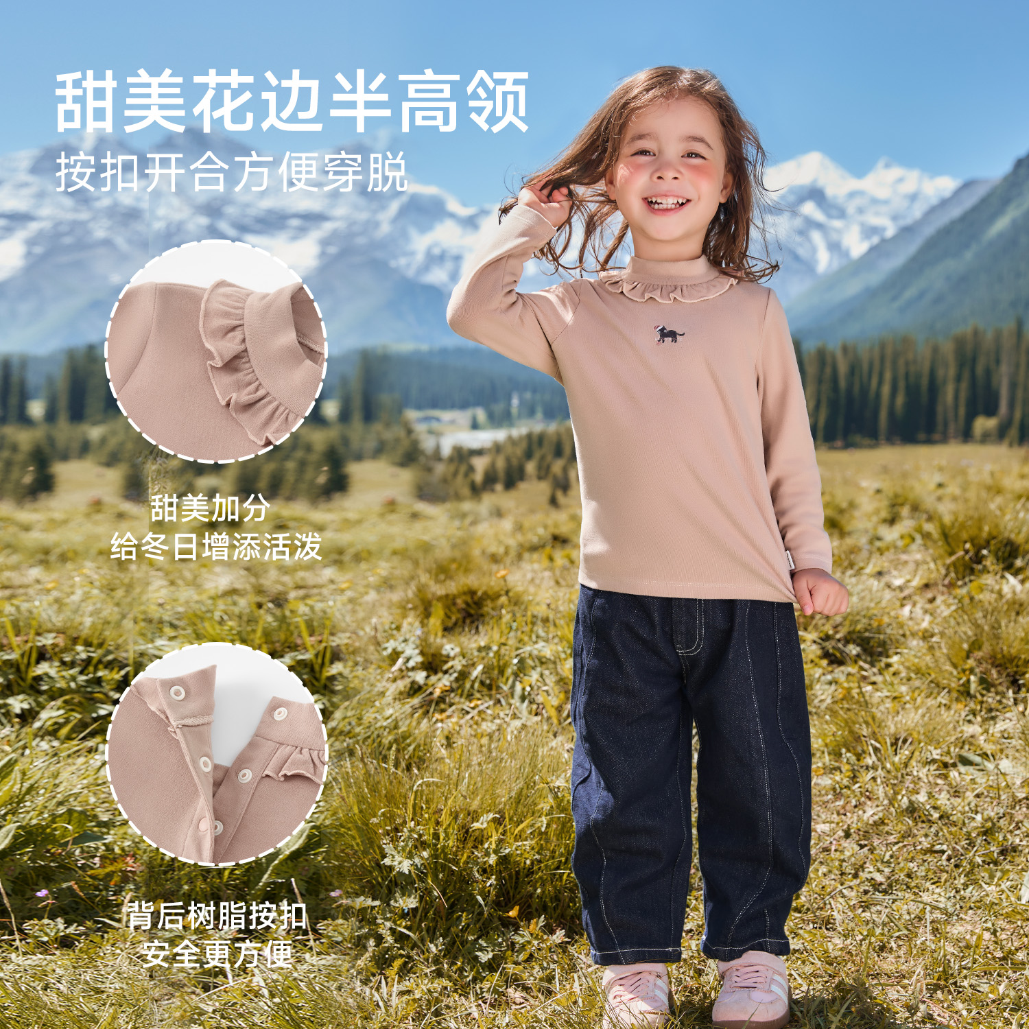 尼多熊25秋冬新款女童花边半高领打底衫女宝保暖透气婴儿长袖T恤