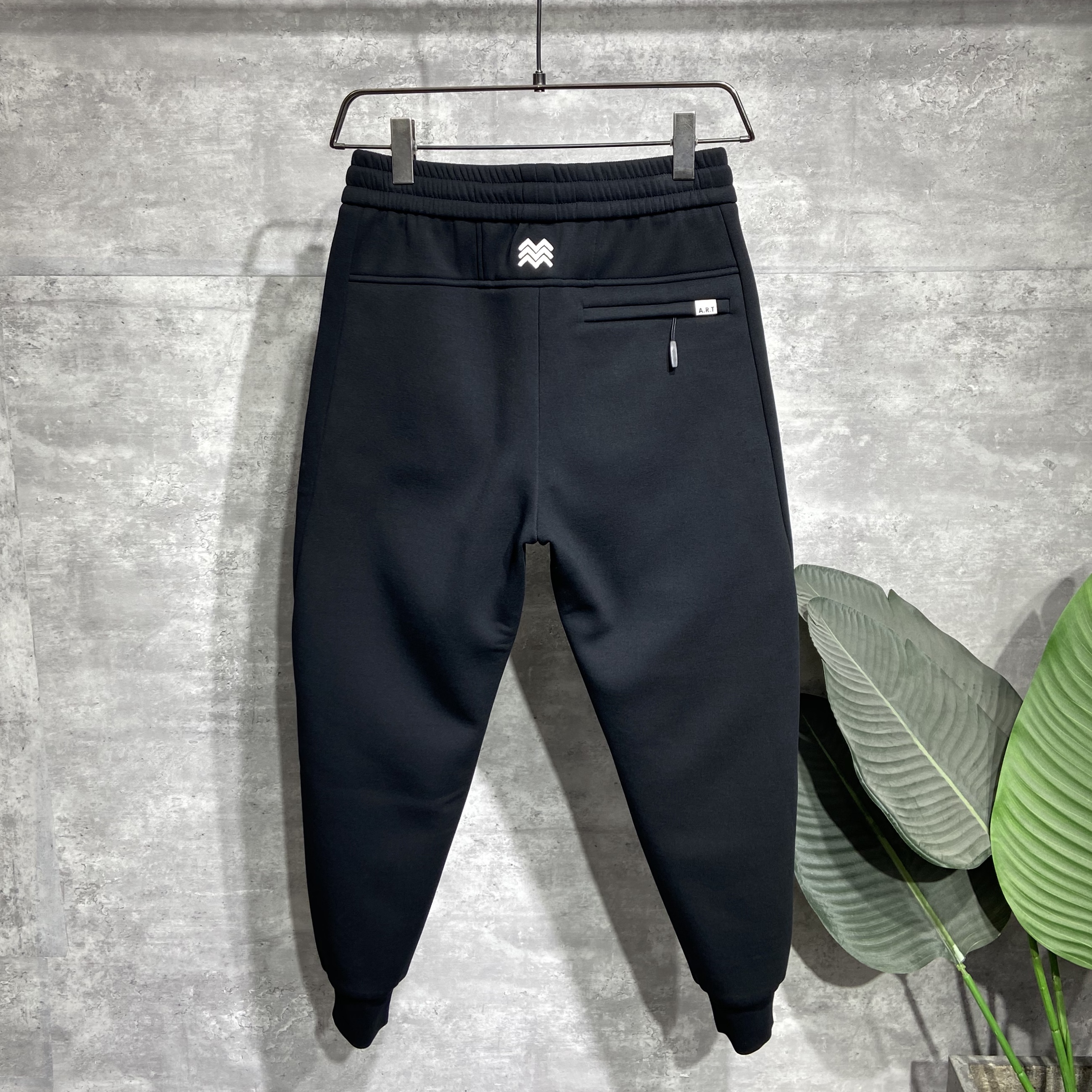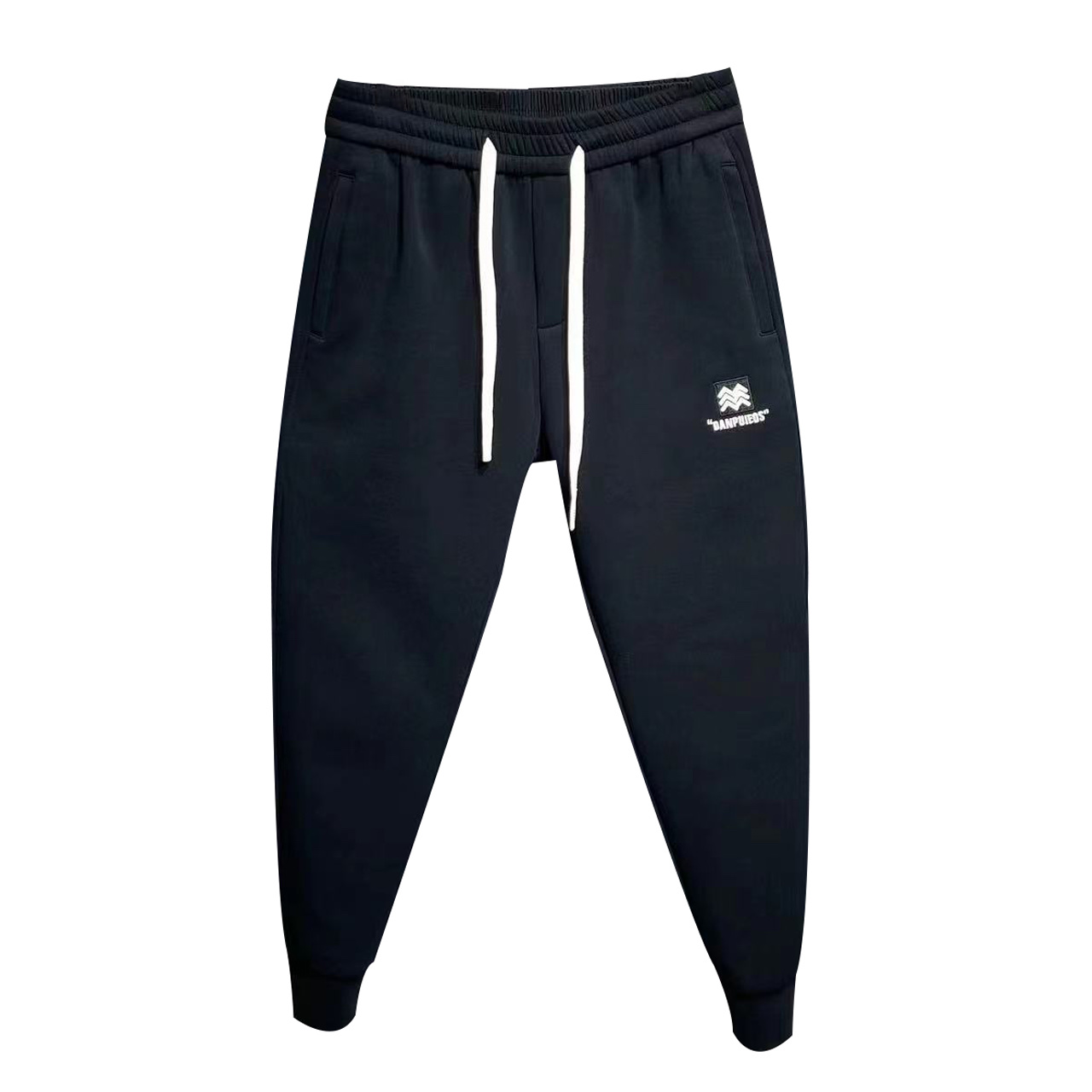 秋季潮流刺绣百搭厚料休闲裤男士潮牌黑色运动束脚卫裤弹力运动裤