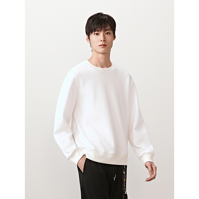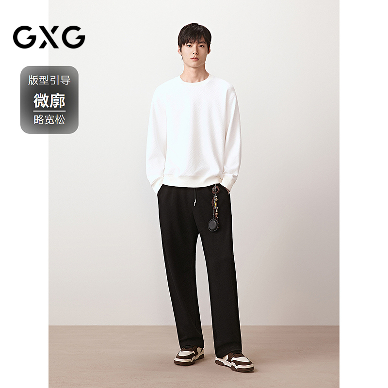 GXG男装 圆领卫衣双色肌理提花长袖内搭上衣 2025秋季新品