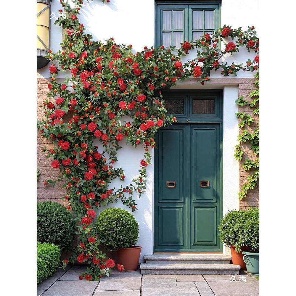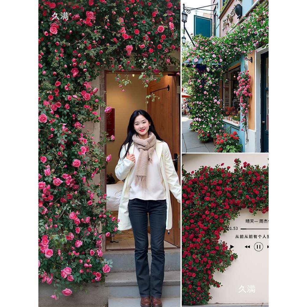 玫瑰t$*&lznh红花网打门卡花墙瀑布墙壁假管道装饰花藤条遮挡花头