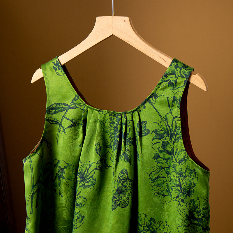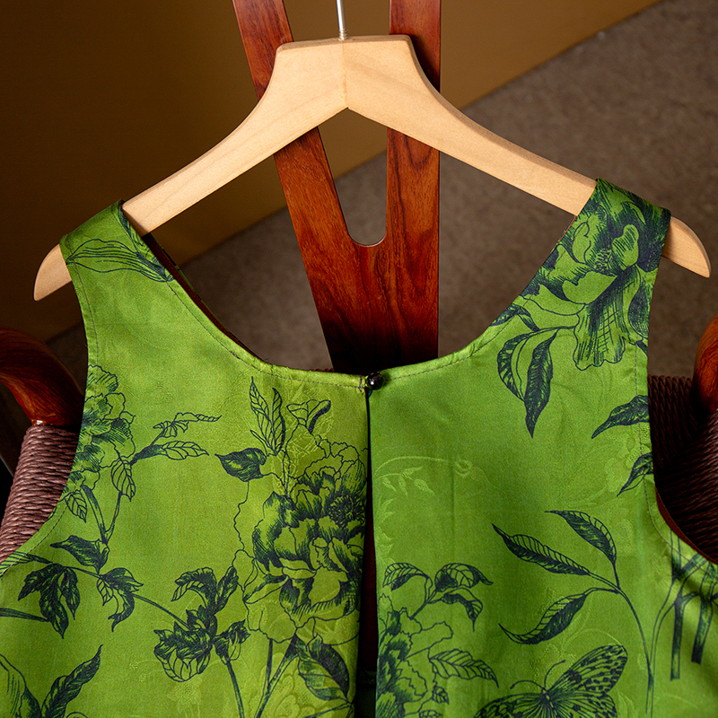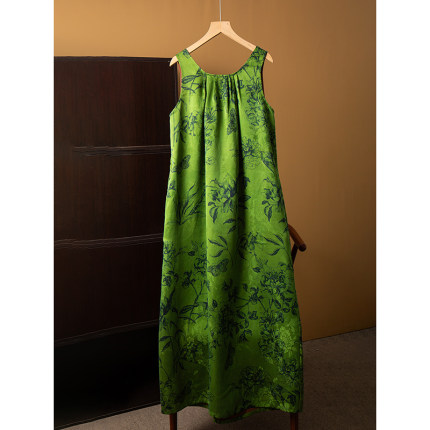 现货 真丝香云纱花萝印花真丝无袖连衣裙100%桑蚕丝背心裙宽松夏
