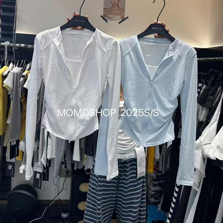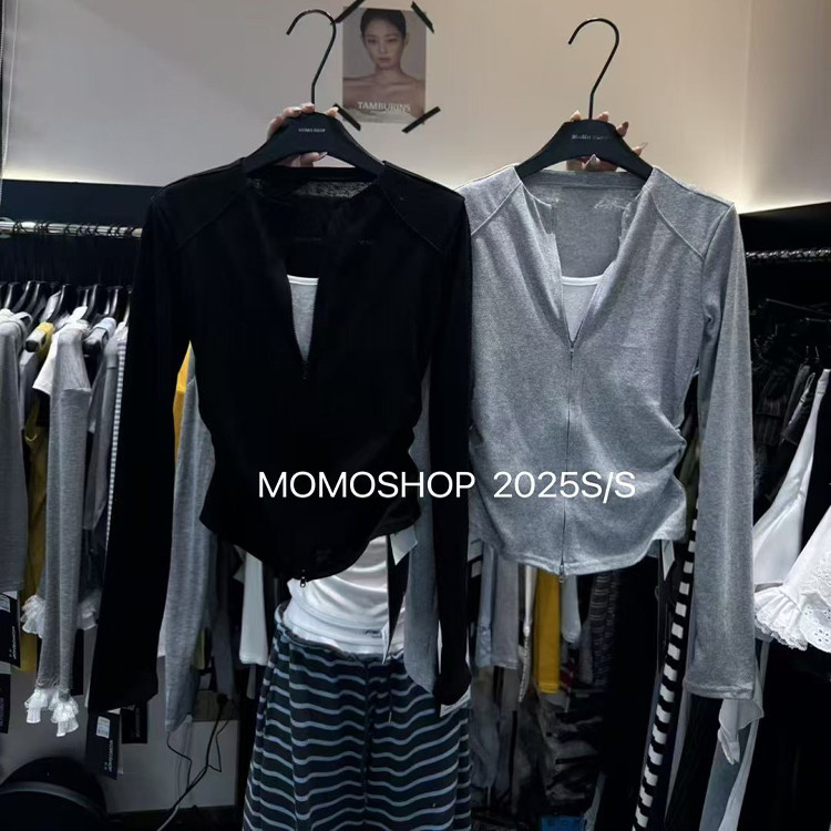 十三行2025春夏新款韩版洋气时尚百搭纯色假两件显瘦拉链防晒上衣