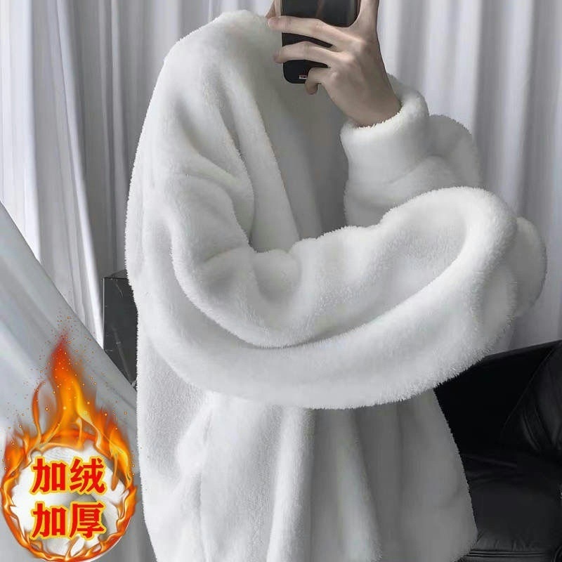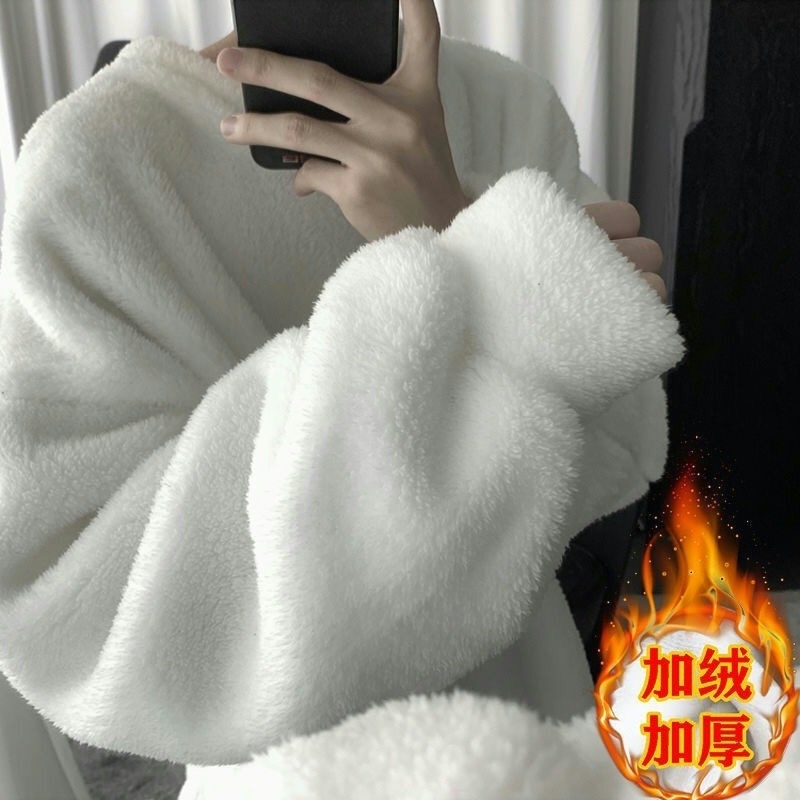 卫衣男ins秋冬季加绒加厚韩版宽松套头保暖上衣圆领情侣外套女潮
