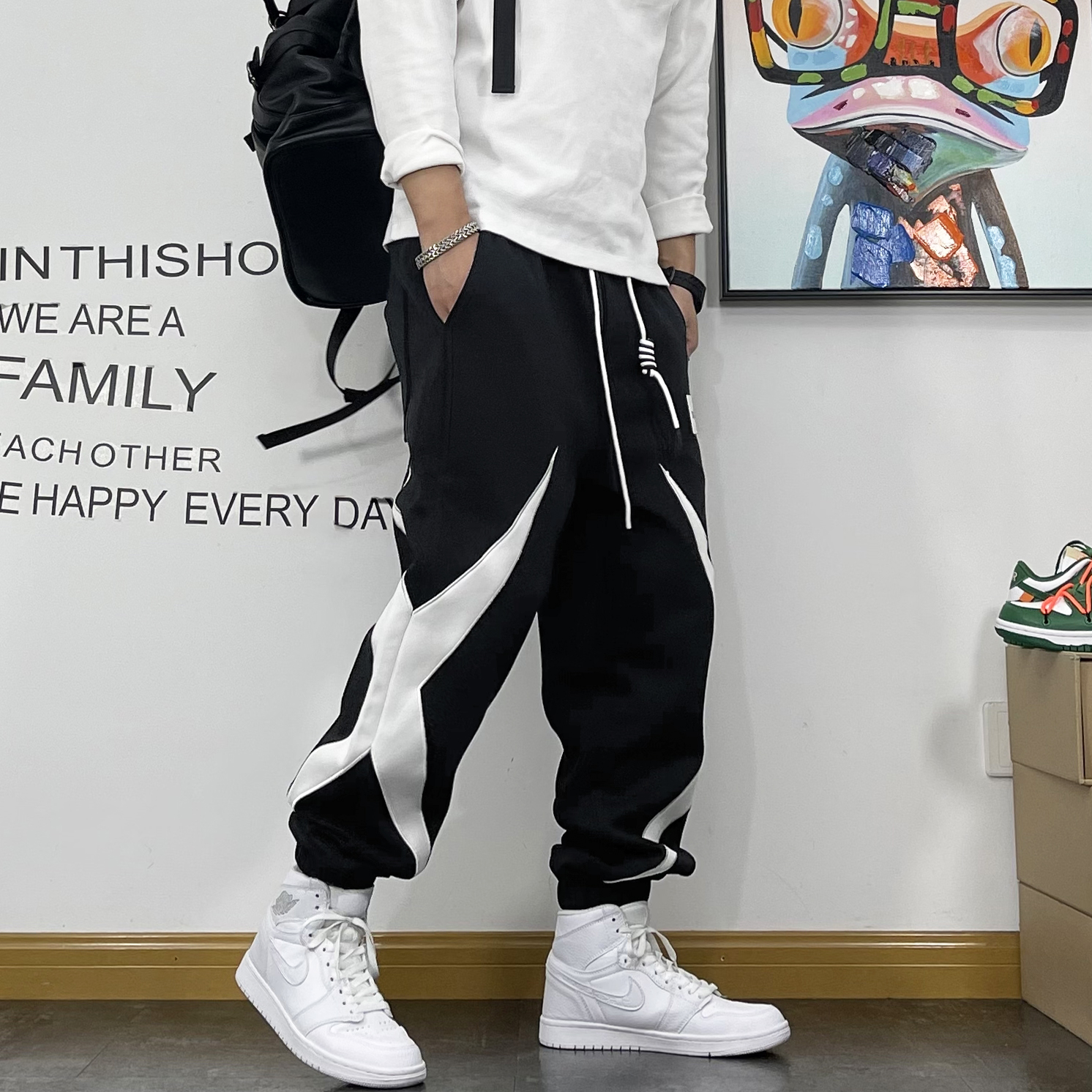 春秋新款运动裤男青年潮流拼接休闲裤男宽松小脚松紧腰潮牌卫裤男