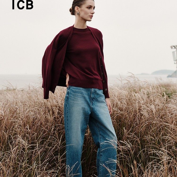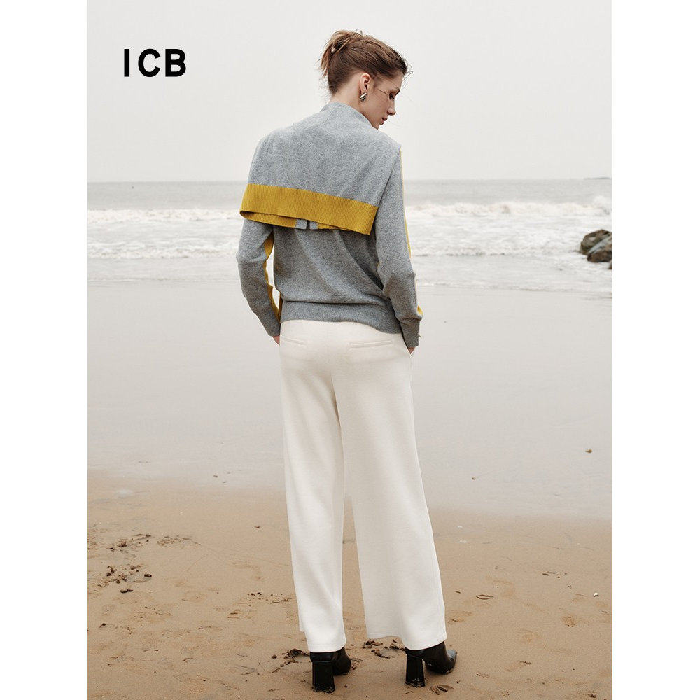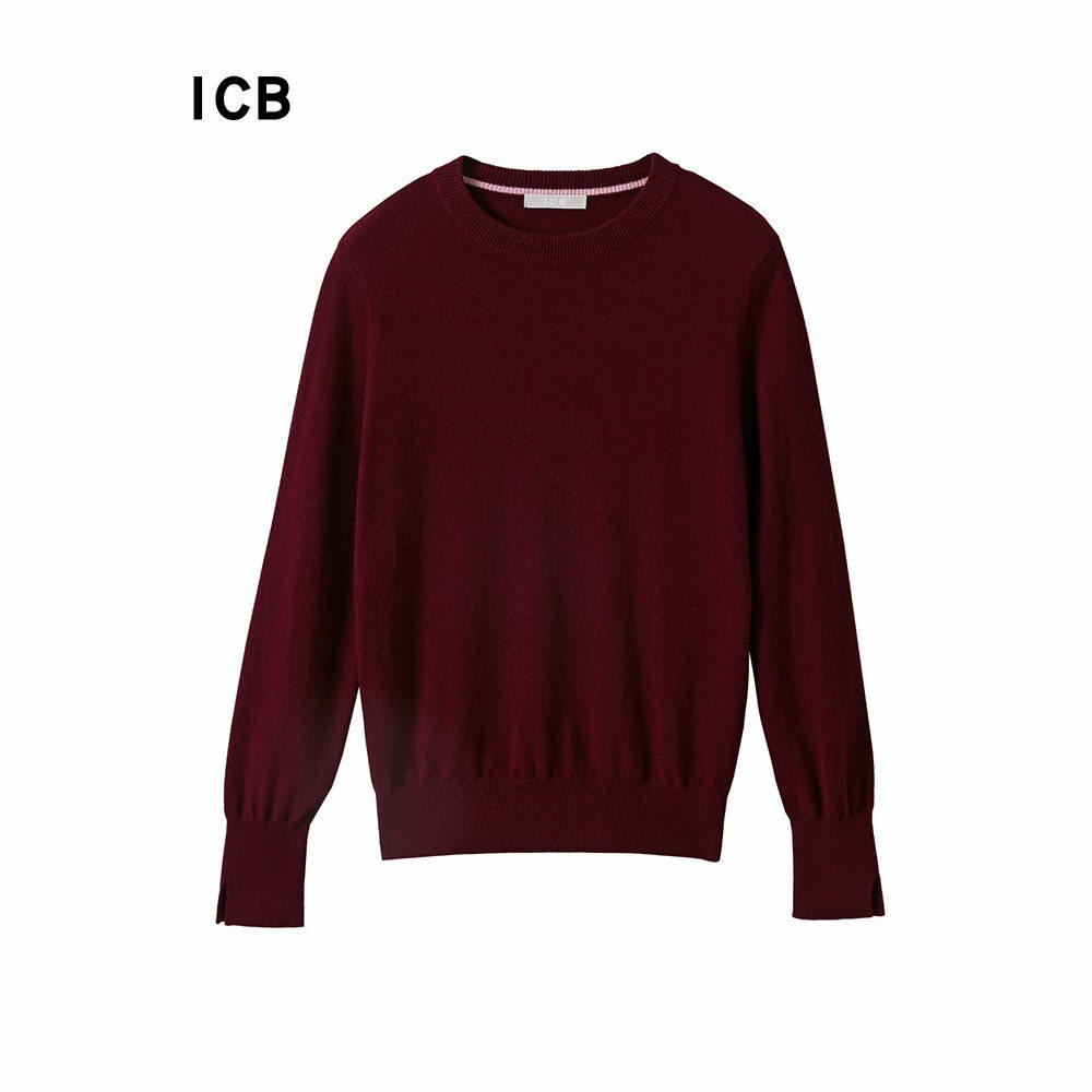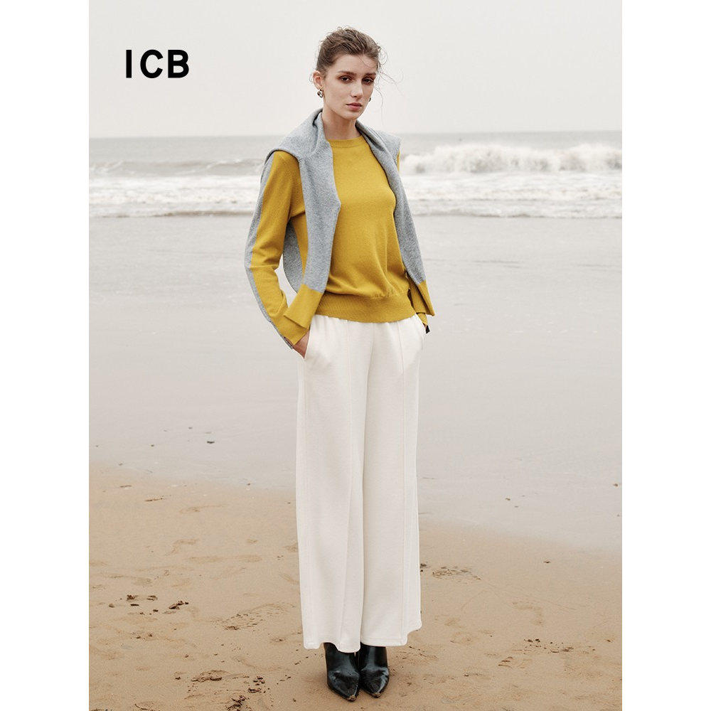 ICB日系秋季通勤宽松纯羊绒圆领套头针织羊绒毛衣编织衫商场同款