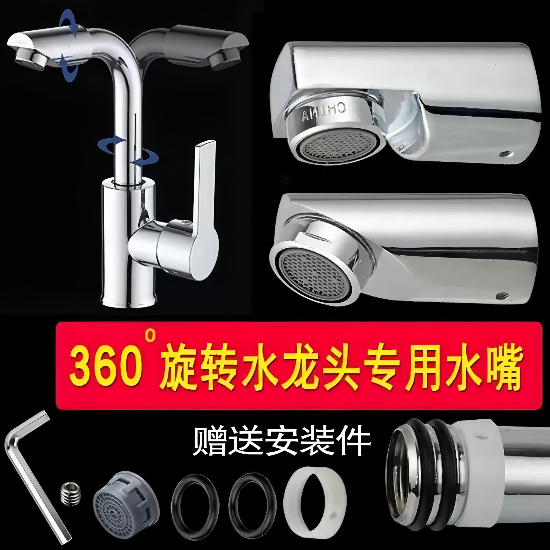 铜厨房出水咀面盆水龙头弯管360旋转头气泡器过滤网水嘴接头配件