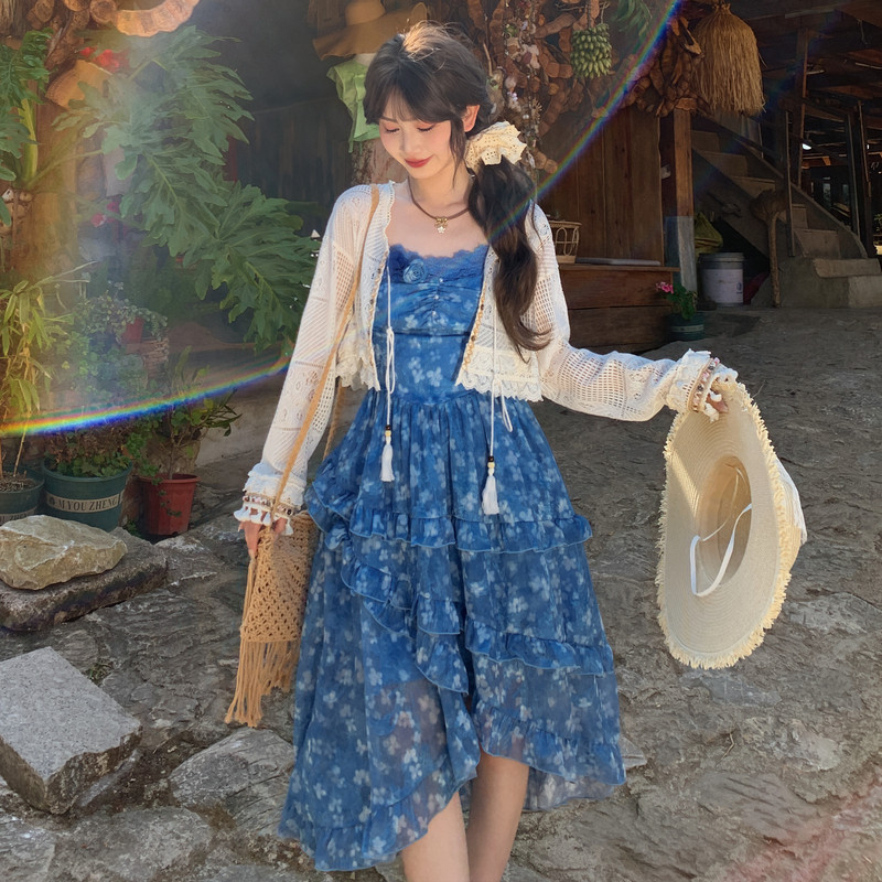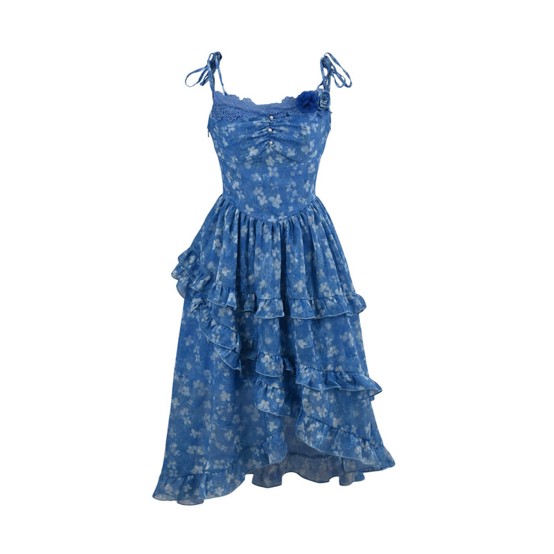 上新限时88折森女部落度假风碎花吊带裙女夏雪纺收腰显瘦连衣裙