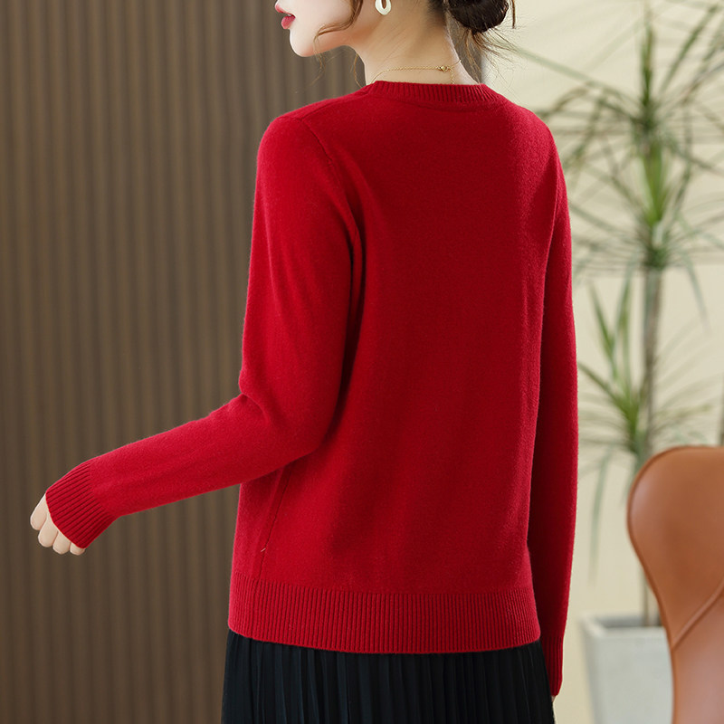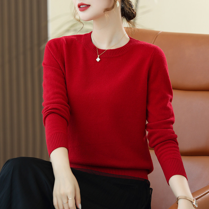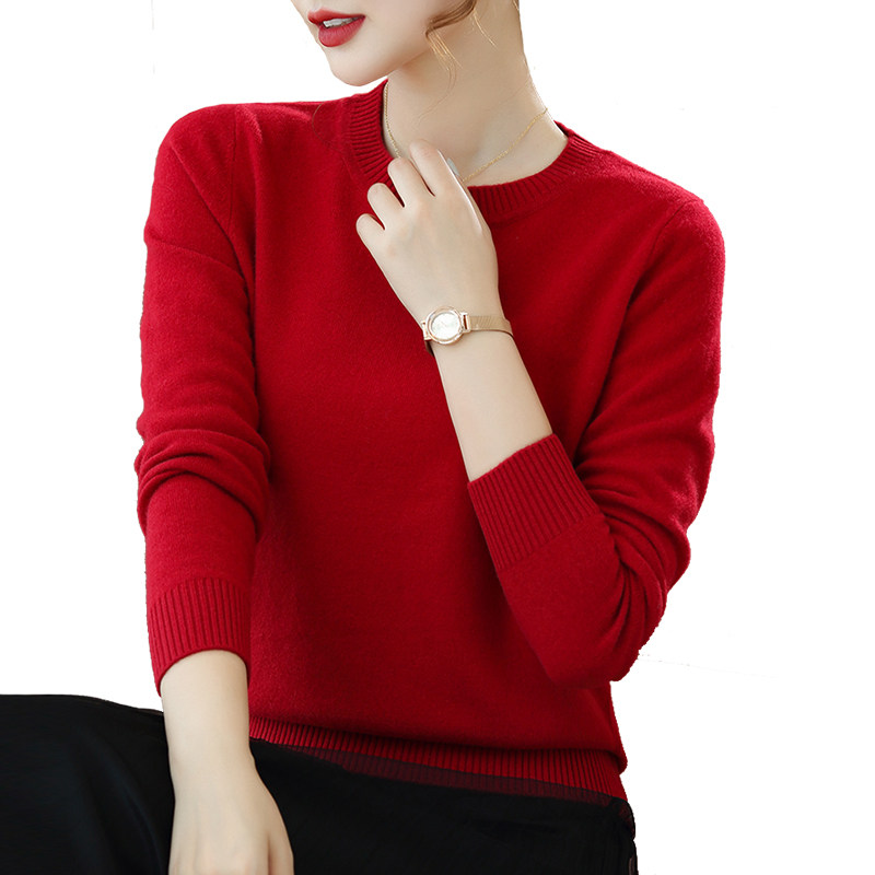 恒源祥100纯羊毛衫女套头保暖针织衫秋冬新款毛衣外套大红打底衫