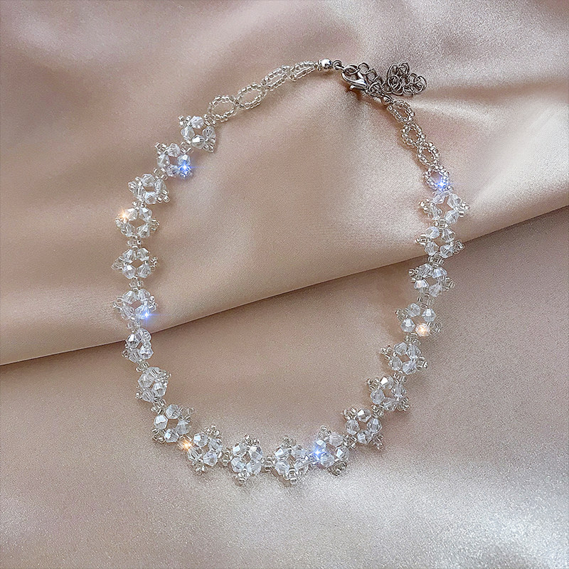 法式复古串珠花朵项链女欧美风性感短款choker颈链网红气质锁骨链
