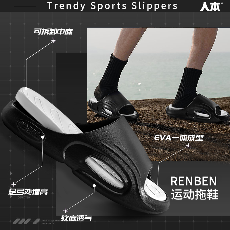 人本厚底拖鞋男士夏季居家外穿凉拖女运动eva拖鞋防滑户外沙滩鞋
