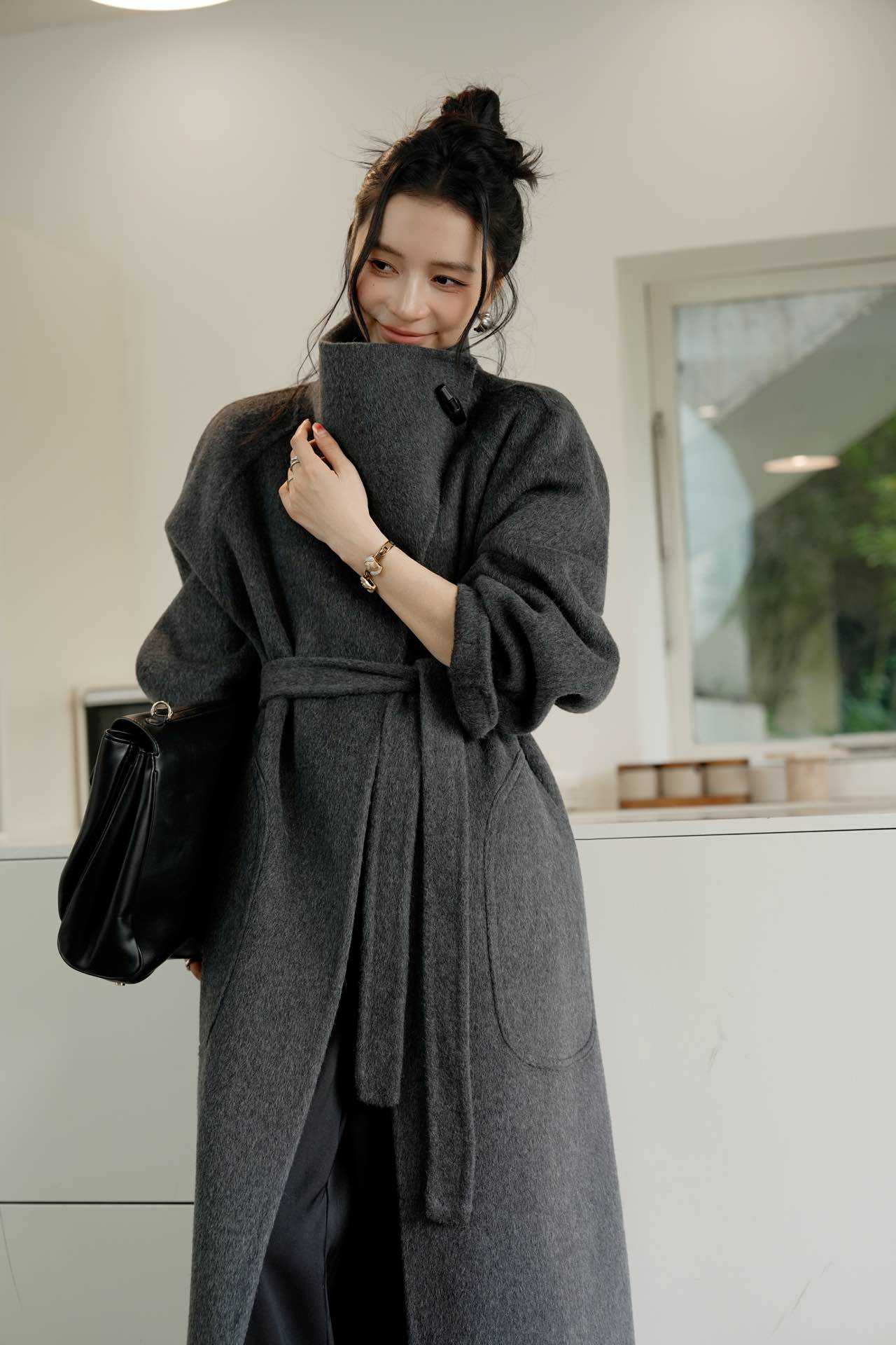 老钱风兆弟晴2025秋冬新款女中长款宽松羊毛呢外套大衣领子可两穿