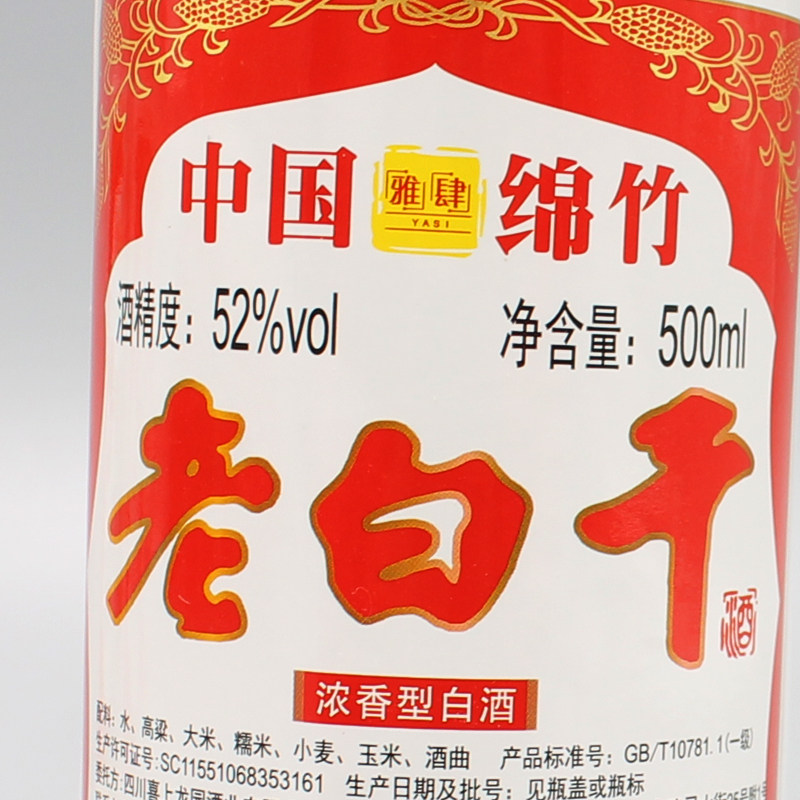 雅肆500ml绵竹产52度60度白酒