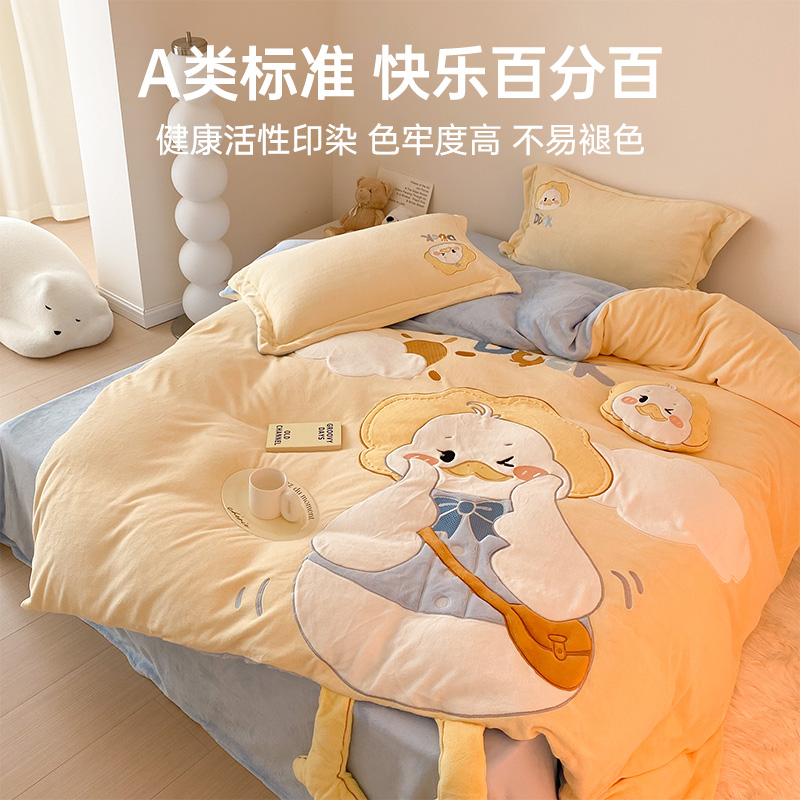 无印良品A类高端儿童牛奶绒四件套冬季加厚保暖卡通被套床单床品