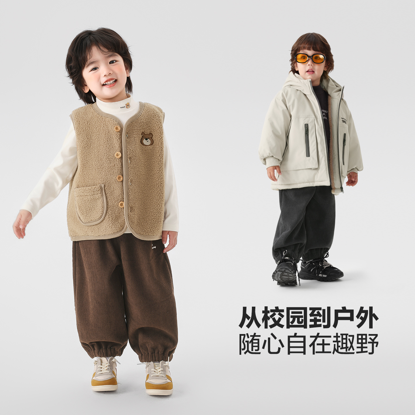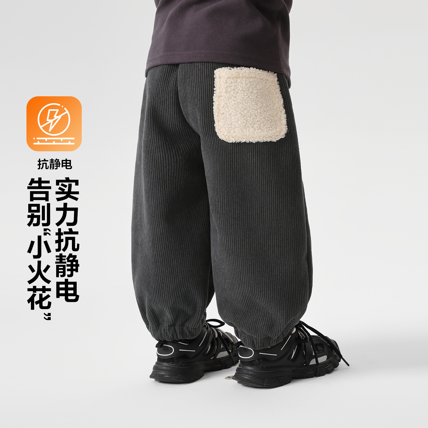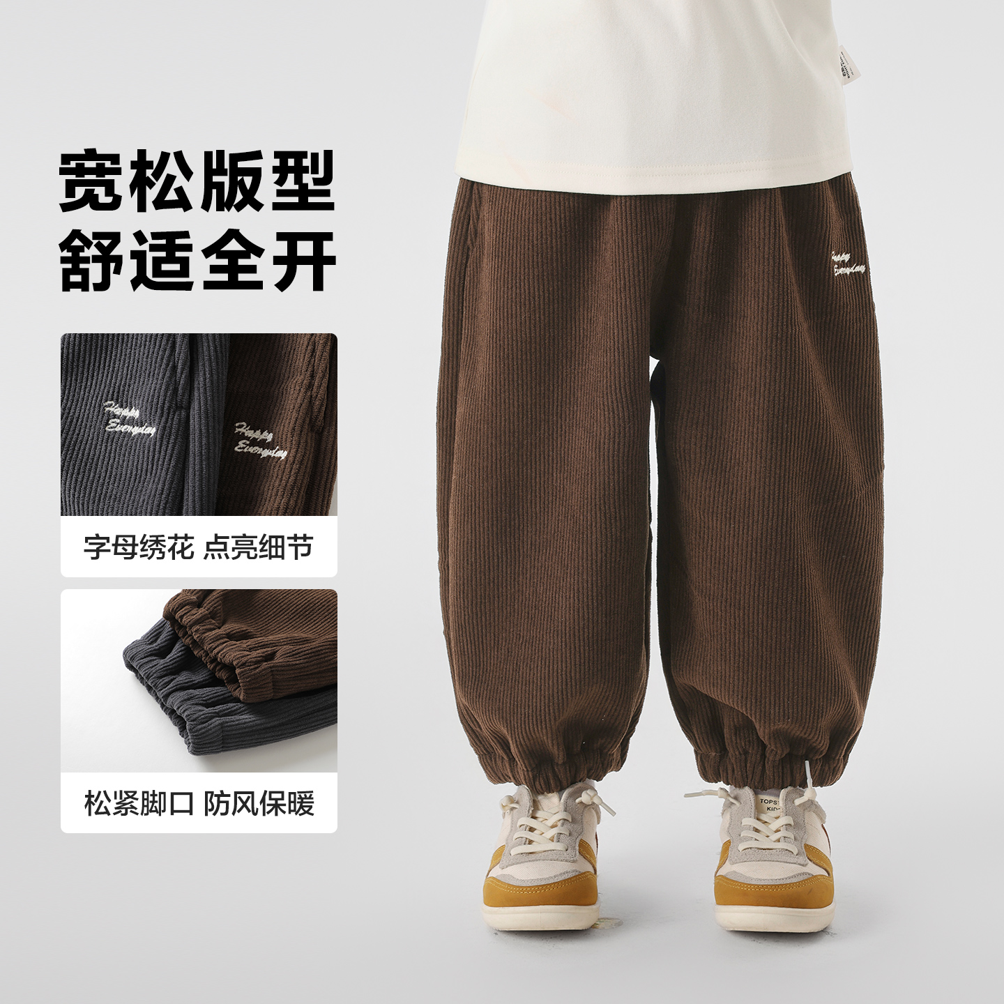 右欧儿童加绒加厚灯芯绒长裤冬季新款童装休闲男女童保暖束脚裤子