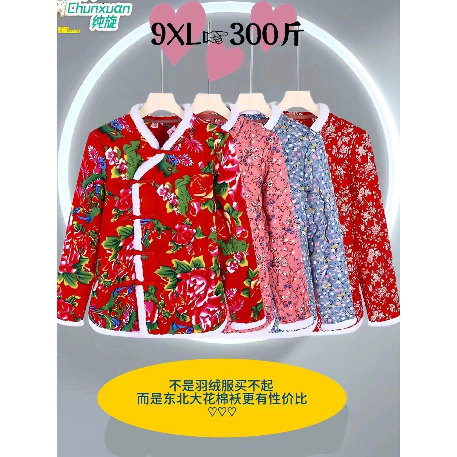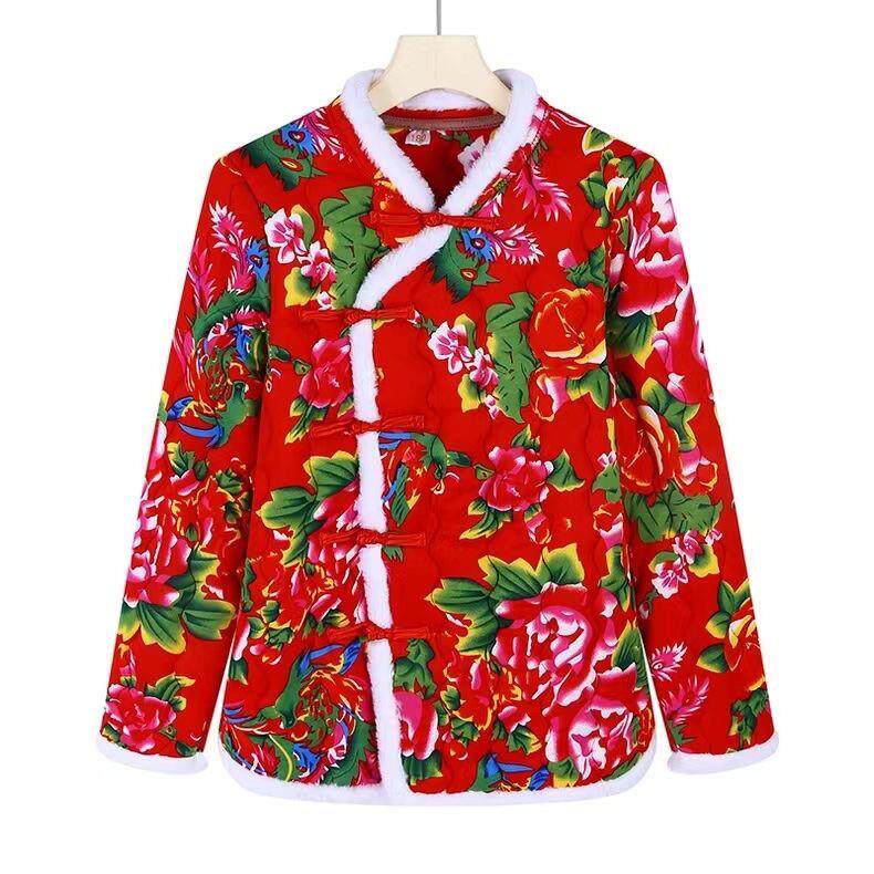300斤加大码东北大花棉袄冬季加厚碎花妈妈棉服复古民族风棉衣