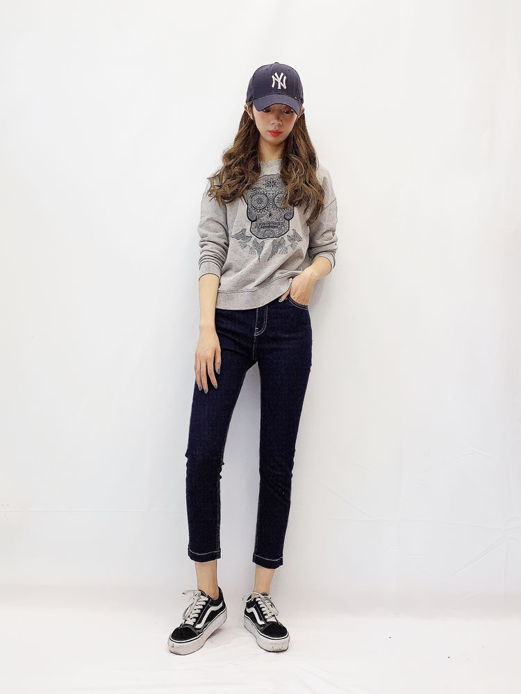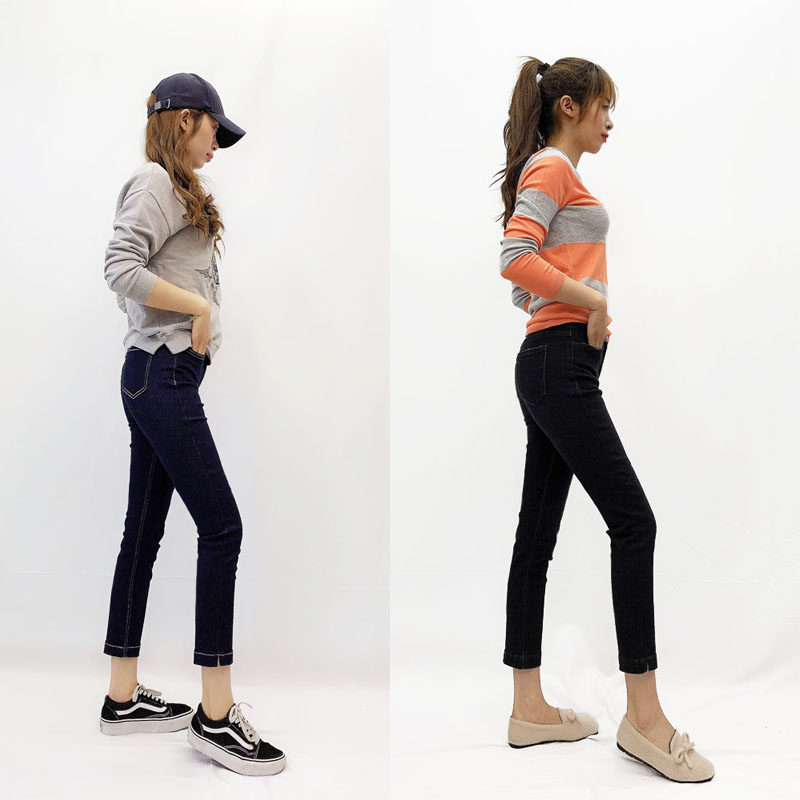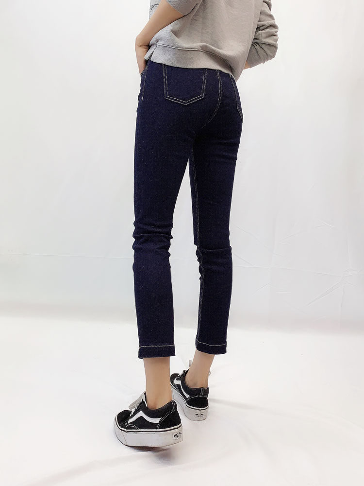 百搭显瘦高级蓝高腰烟管裤直筒裤