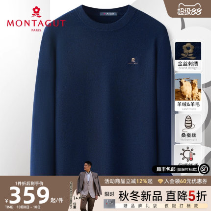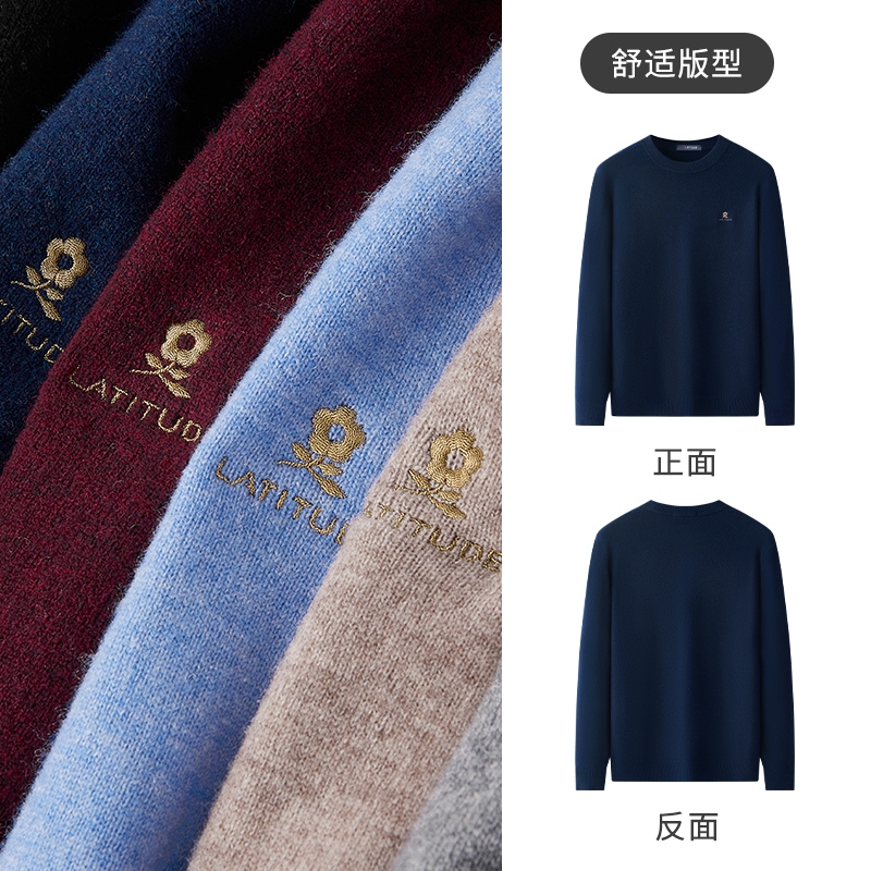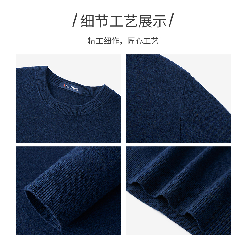 [山羊绒绵羊毛桑蚕丝]梦特娇秋冬男士羊毛衫圆领羊绒毛衣保暖厚J